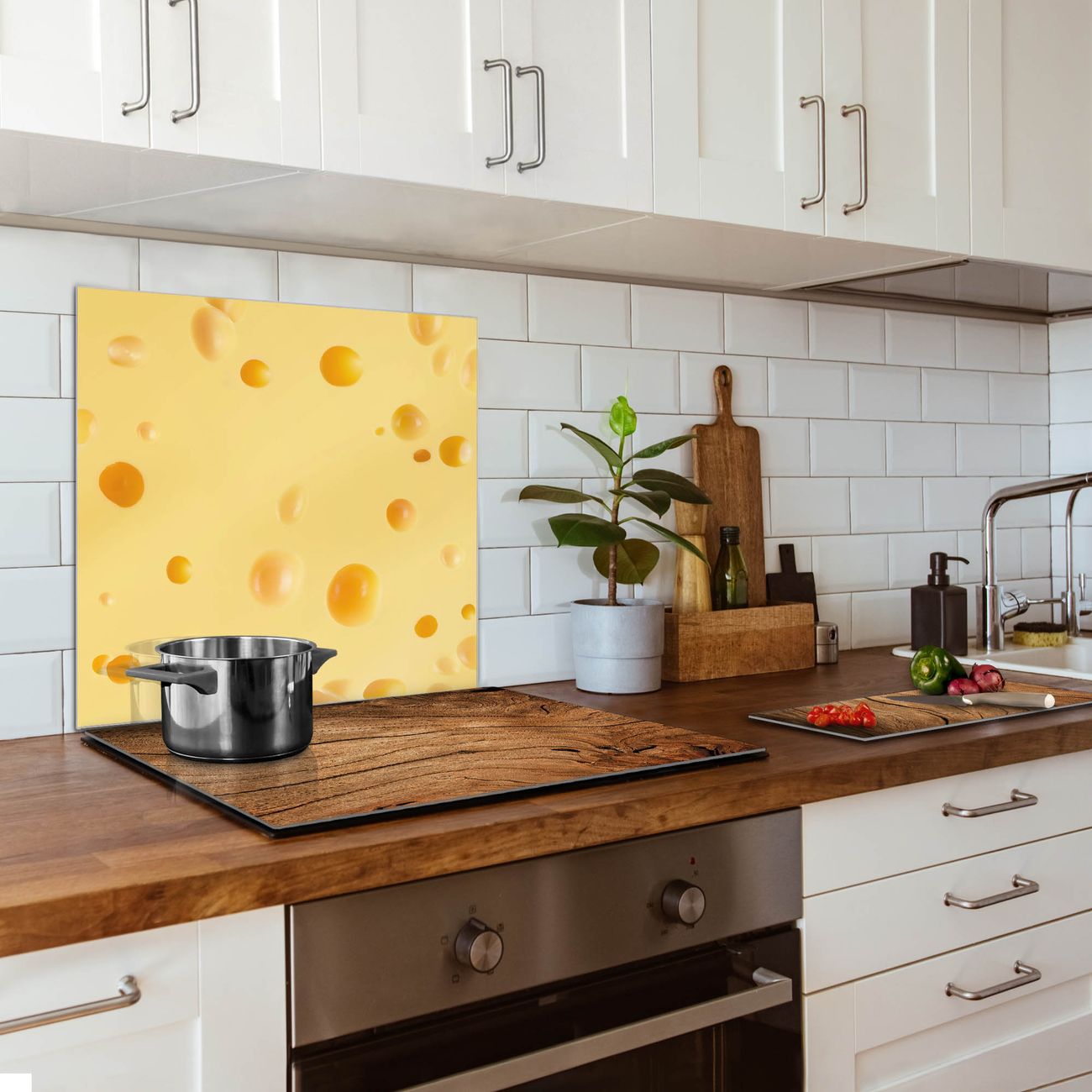 Die banjado Glas Küchenrückwand in verschiedenen Größen mit Motiv Käse schützt Ihre Küchenfliesen vor Fettspritzern oder Wasserflecken. Der Spritzschutz ist gleichzeitig magnetisch und hält Ihre Rezepte oder Einkaufslisten. 4 Neodym-Magnete und 1 Kreidestift liegen bereits bei. Leuchtende Motive und hochwertiges Material machen den Spritzschutz zum Designobjekt. Das dekorative Glasbild gibt Ihrer Küche ein individuelles Erscheinungsbild. Abgerundete Kanten und Sicherheitsglas sorgen für einen sicheren Einsatz.