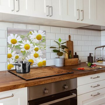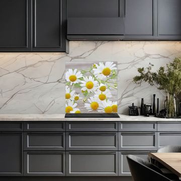 Die banjado Glas Küchenrückwand in verschiedenen Größen mit Motiv Kamillenblüten schützt Ihre Küchenfliesen vor Fettspritzern oder Wasserflecken. Der Spritzschutz ist gleichzeitig magnetisch und hält Ihre Rezepte oder Einkaufslisten. 4 Neodym-Magnete und 1 Kreidestift liegen bereits bei. Leuchtende Motive und hochwertiges Material machen den Spritzschutz zum Designobjekt. Das dekorative Glasbild gibt Ihrer Küche ein individuelles Erscheinungsbild. Abgerundete Kanten und Sicherheitsglas sorgen für einen sicheren Einsatz.
