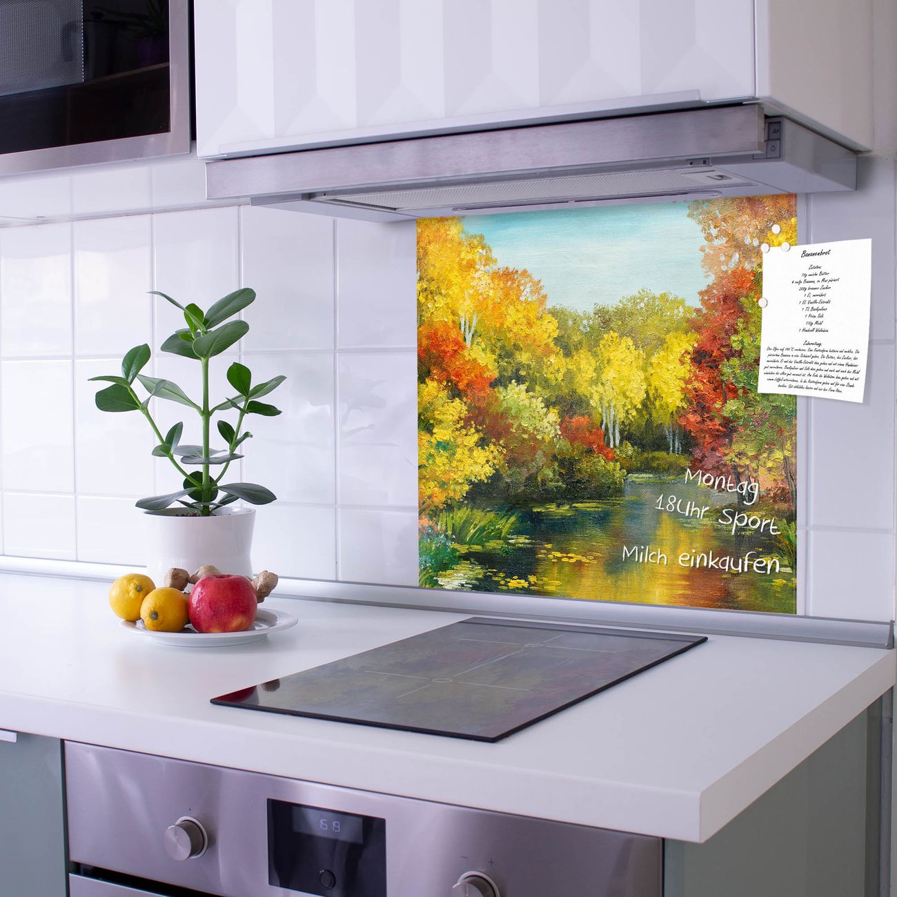 Die banjado Glas Küchenrückwand in verschiedenen Größen mit Motiv Kanal Im Herbst schützt Ihre Küchenfliesen vor Fettspritzern oder Wasserflecken. Der Spritzschutz ist gleichzeitig magnetisch und hält Ihre Rezepte oder Einkaufslisten. 4 Neodym-Magnete und 1 Kreidestift liegen bereits bei. Leuchtende Motive und hochwertiges Material machen den Spritzschutz zum Designobjekt. Das dekorative Glasbild gibt Ihrer Küche ein individuelles Erscheinungsbild. Abgerundete Kanten und Sicherheitsglas sorgen für einen sicheren Einsatz.