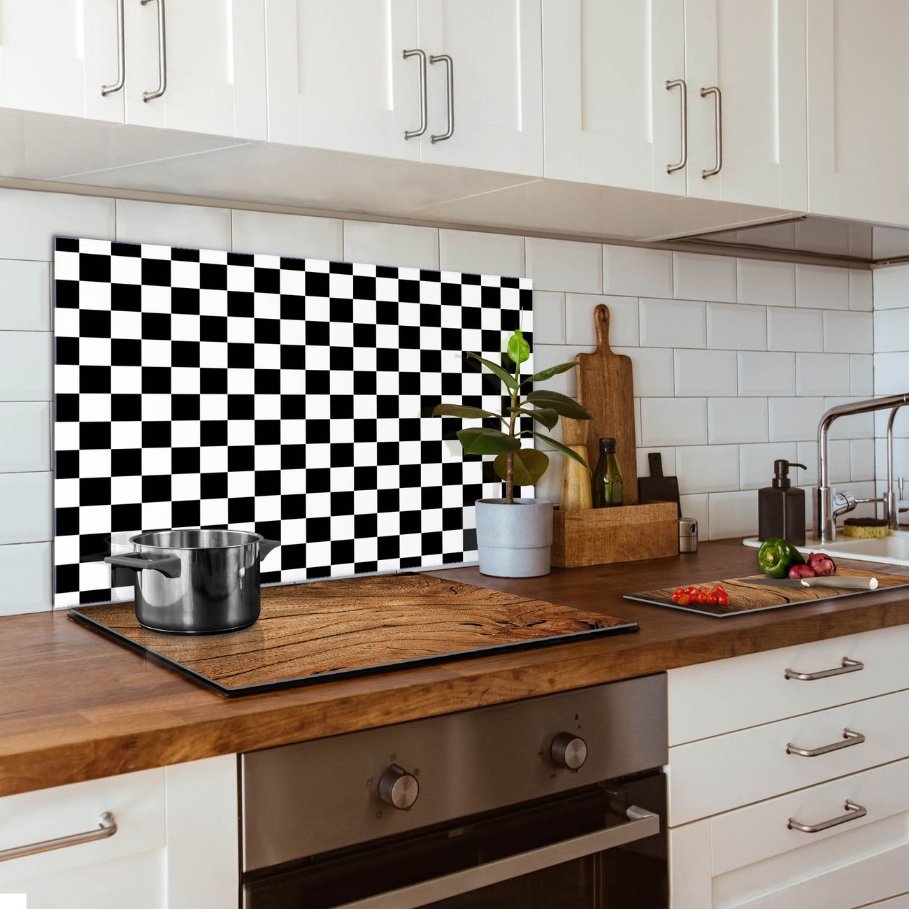Küchenrückwand Glas Motiv Karo Schwarz