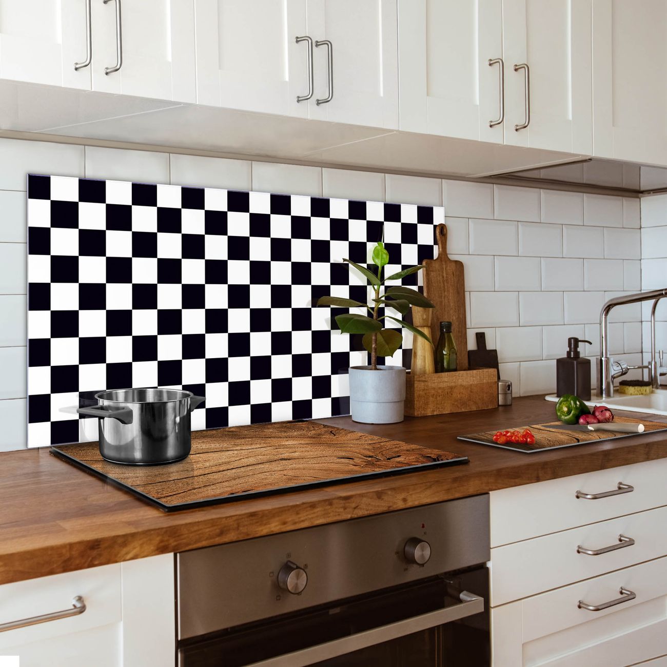 Küchenrückwand Glas Motiv Karo Schwarz