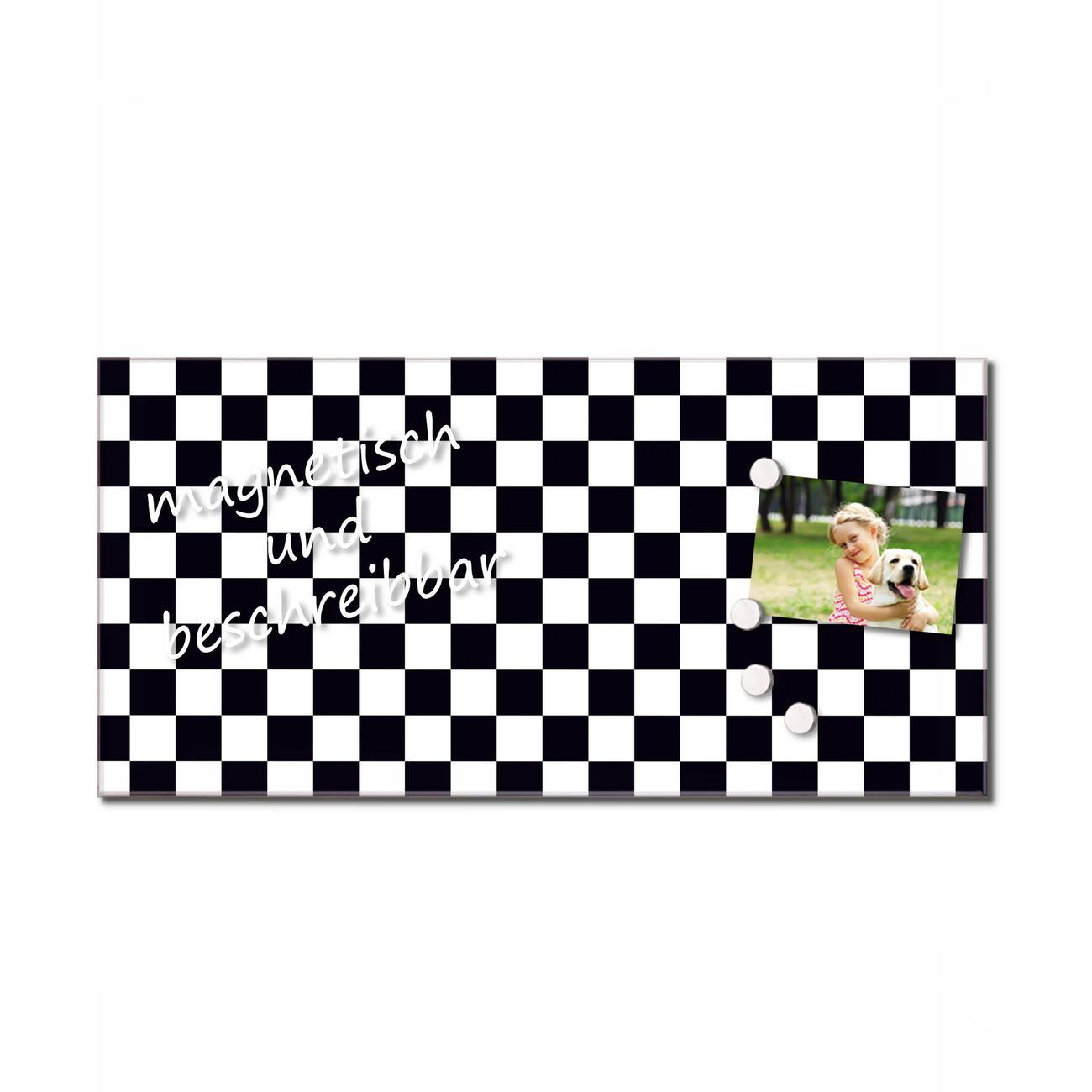 Bitte beachten Sie, dass ausschließlich spezielle Magnete an der Glastafel haften! Wir empfehlen banjado Neodym Magnete, diese sind durch uns auf Wirksamkeit geprüft.