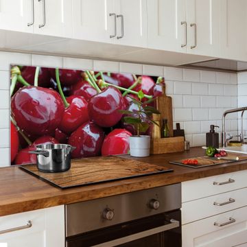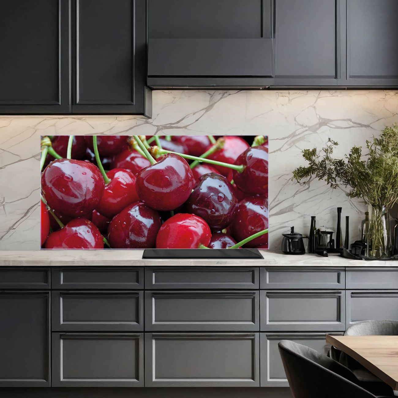 Die banjado Glas Küchenrückwand in verschiedenen Größen mit Motiv Kirschen schützt Ihre Küchenfliesen vor Fettspritzern oder Wasserflecken. Der Spritzschutz ist gleichzeitig magnetisch und hält Ihre Rezepte oder Einkaufslisten. 4 Neodym-Magnete und 1 Kreidestift liegen bereits bei. Leuchtende Motive und hochwertiges Material machen den Spritzschutz zum Designobjekt. Das dekorative Glasbild gibt Ihrer Küche ein individuelles Erscheinungsbild. Abgerundete Kanten und Sicherheitsglas sorgen für einen sicheren Einsatz.