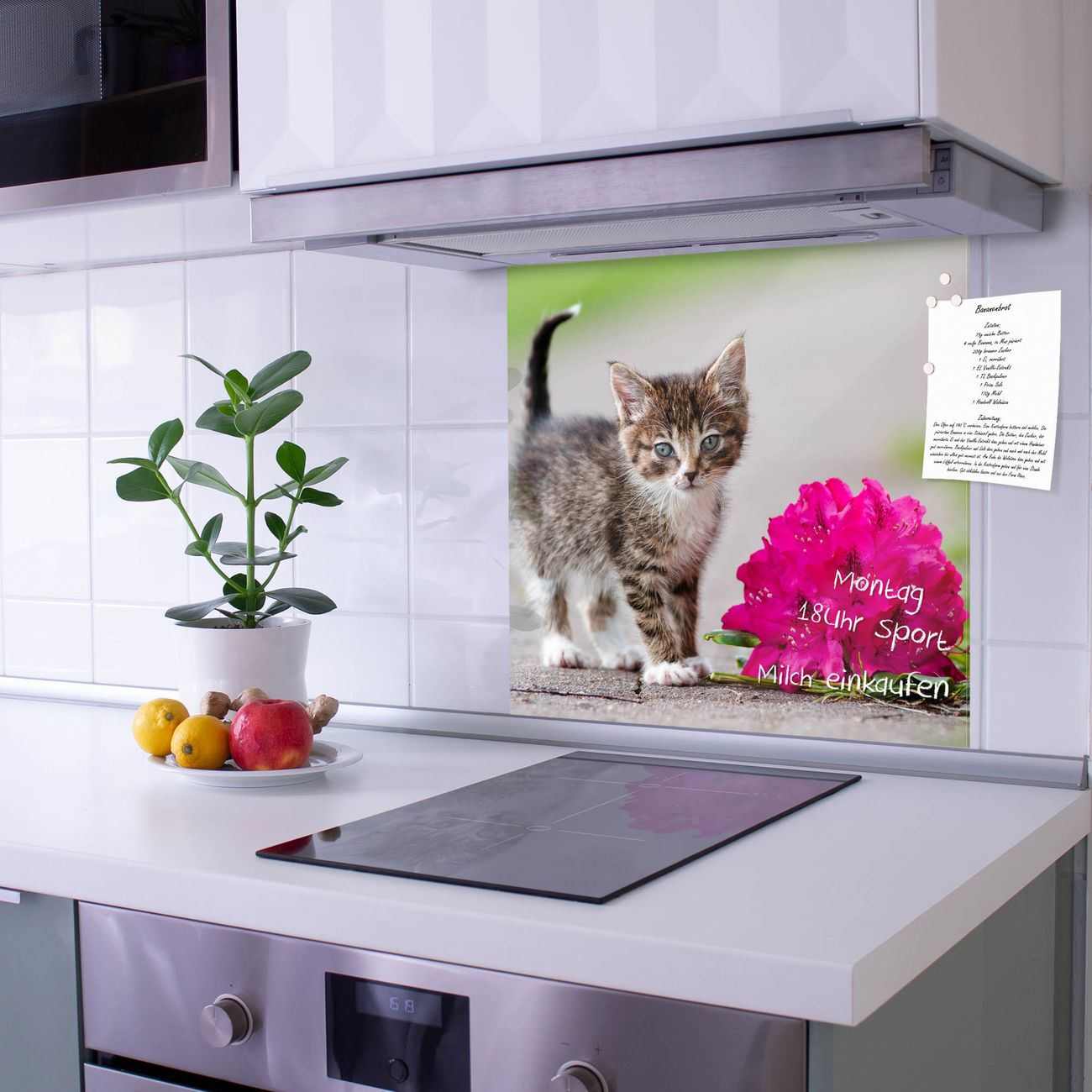 Die Küchenrückwand ist eine elegante Mehrzwecktafel: als Spritzschutz hinter Herd oder Waschbecken, hält Notizen wie ein Memoboard, ist beschreibbar mit Kreidestiften oder Whiteboard-Markern, sieht umwerfend als Glasbild aus. Sie besteht aus gehärtetem Glas, die Rückwand aus einem magnetischen Stahlblech. Durch die superflache Bauweise haben Sie die Wahl aus einer Vielzahl von Befestigungsmöglichkeiten. Sie können die Küchenrückwand mit einem Montagekleber superflach an die Wand kleben oder Sie wählen eines unserer passenden Befestigungssets, welches eine optimale Montage garantiert. Die Küchenrückwand besteht aus zertifiziertem Sicherheitsglas. Durch die mitgelieferten 4 Neodym-Magnete ist Ihre Glas Magnettafel sofort einsatzbereit.
