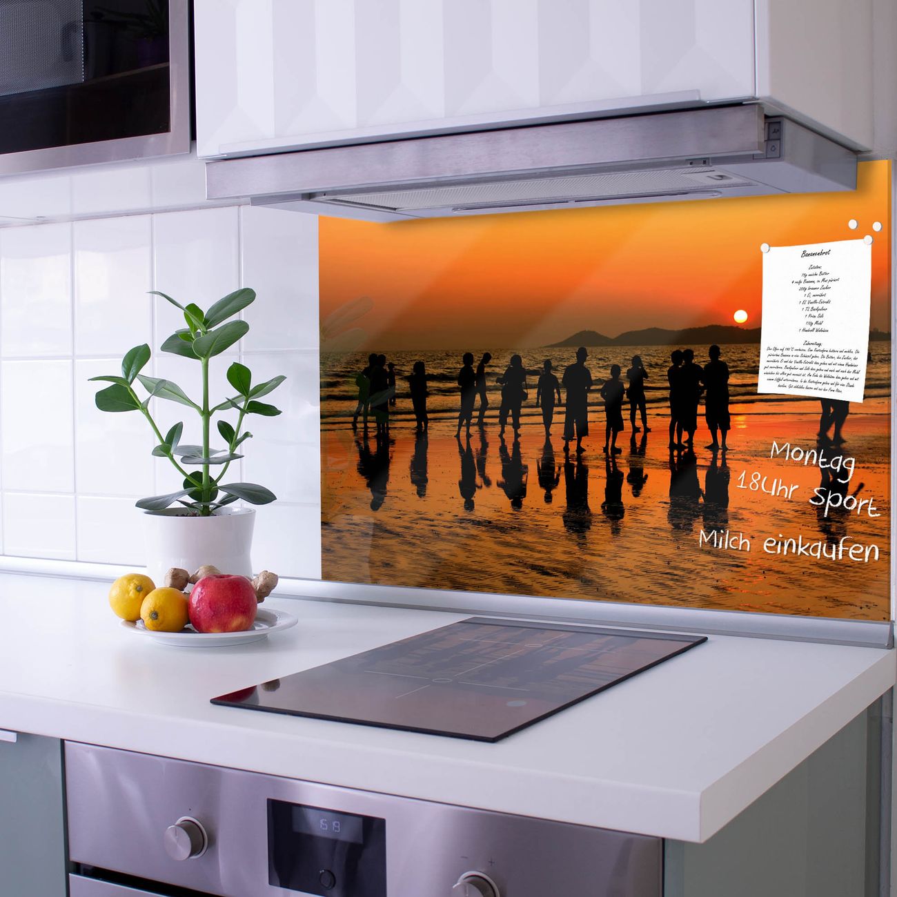 Die Küchenrückwand ist eine elegante Mehrzwecktafel: als Spritzschutz hinter Herd oder Waschbecken, hält Notizen wie ein Memoboard, ist beschreibbar mit Kreidestiften oder Whiteboard-Markern, sieht umwerfend als Glasbild aus. Sie besteht aus gehärtetem Glas, die Rückwand aus einem magnetischen Stahlblech. Durch die superflache Bauweise haben Sie die Wahl aus einer Vielzahl von Befestigungsmöglichkeiten. Sie können die Küchenrückwand mit einem Montagekleber superflach an die Wand kleben oder Sie wählen eines unserer passenden Befestigungssets, welches eine optimale Montage garantiert. Die Küchenrückwand besteht aus zertifiziertem Sicherheitsglas. Durch die mitgelieferten 4 Neodym-Magnete ist Ihre Glas Magnettafel sofort einsatzbereit.