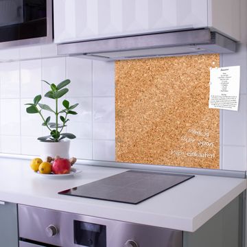 Die banjado Glas Küchenrückwand in verschiedenen Größen mit Motiv Kork schützt Ihre Küchenfliesen vor Fettspritzern oder Wasserflecken. Der Spritzschutz ist gleichzeitig magnetisch und hält Ihre Rezepte oder Einkaufslisten. 4 Neodym-Magnete und 1 Kreidestift liegen bereits bei. Leuchtende Motive und hochwertiges Material machen den Spritzschutz zum Designobjekt. Das dekorative Glasbild gibt Ihrer Küche ein individuelles Erscheinungsbild. Abgerundete Kanten und Sicherheitsglas sorgen für einen sicheren Einsatz.
