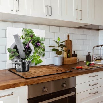 Die banjado Glas Küchenrückwand in verschiedenen Größen mit Motiv Kräuter schützt Ihre Küchenfliesen vor Fettspritzern oder Wasserflecken. Der Spritzschutz ist gleichzeitig magnetisch und hält Ihre Rezepte oder Einkaufslisten. 4 Neodym-Magnete und 1 Kreidestift liegen bereits bei. Leuchtende Motive und hochwertiges Material machen den Spritzschutz zum Designobjekt. Das dekorative Glasbild gibt Ihrer Küche ein individuelles Erscheinungsbild. Abgerundete Kanten und Sicherheitsglas sorgen für einen sicheren Einsatz.