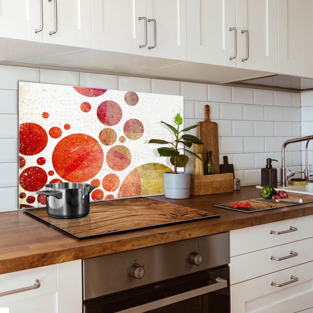 Die banjado Glas Küchenrückwand in verschiedenen Größen mit Motiv Kreise schützt Ihre Küchenfliesen vor Fettspritzern oder Wasserflecken. Der Spritzschutz ist gleichzeitig magnetisch und hält Ihre Rezepte oder Einkaufslisten. 4 Neodym-Magnete und 1 Kreidestift liegen bereits bei. Leuchtende Motive und hochwertiges Material machen den Spritzschutz zum Designobjekt. Das dekorative Glasbild gibt Ihrer Küche ein individuelles Erscheinungsbild. Abgerundete Kanten und Sicherheitsglas sorgen für einen sicheren Einsatz.