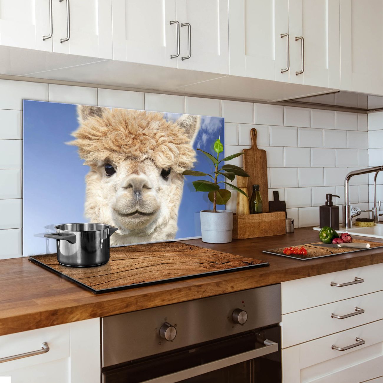 Die banjado Glas Küchenrückwand in verschiedenen Größen mit Motiv Lama schützt Ihre Küchenfliesen vor Fettspritzern oder Wasserflecken. Der Spritzschutz ist gleichzeitig magnetisch und hält Ihre Rezepte oder Einkaufslisten. 4 Neodym-Magnete und 1 Kreidestift liegen bereits bei. Leuchtende Motive und hochwertiges Material machen den Spritzschutz zum Designobjekt. Das dekorative Glasbild gibt Ihrer Küche ein individuelles Erscheinungsbild. Abgerundete Kanten und Sicherheitsglas sorgen für einen sicheren Einsatz.