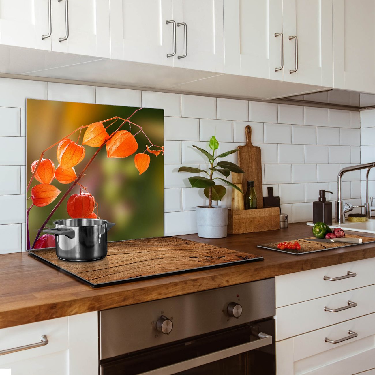 Die banjado Glas Küchenrückwand in verschiedenen Größen mit Motiv Lampionblume schützt Ihre Küchenfliesen vor Fettspritzern oder Wasserflecken. Der Spritzschutz ist gleichzeitig magnetisch und hält Ihre Rezepte oder Einkaufslisten. 4 Neodym-Magnete und 1 Kreidestift liegen bereits bei. Leuchtende Motive und hochwertiges Material machen den Spritzschutz zum Designobjekt. Das dekorative Glasbild gibt Ihrer Küche ein individuelles Erscheinungsbild. Abgerundete Kanten und Sicherheitsglas sorgen für einen sicheren Einsatz.
