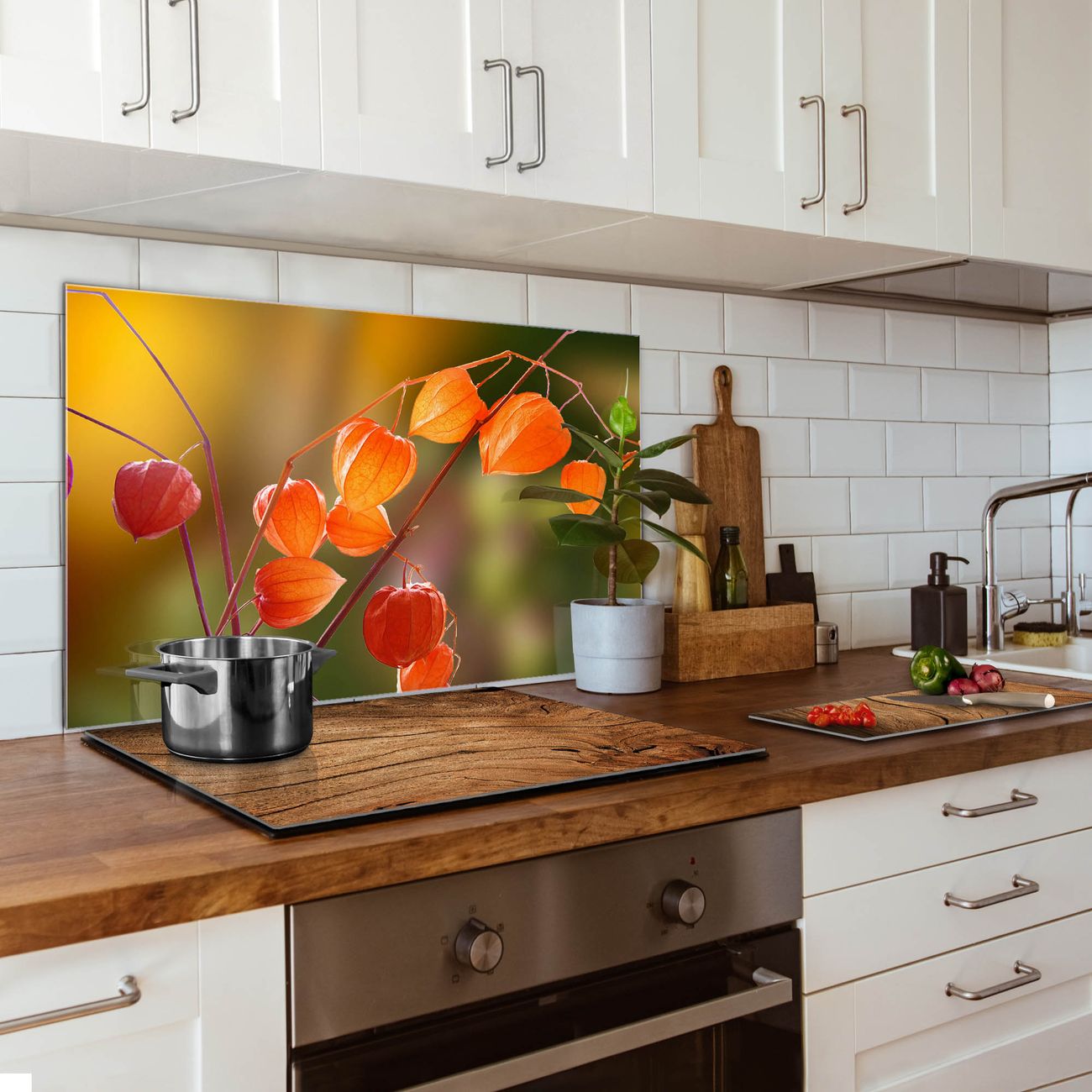 Küchenrückwand Glas Motiv Lampionblume