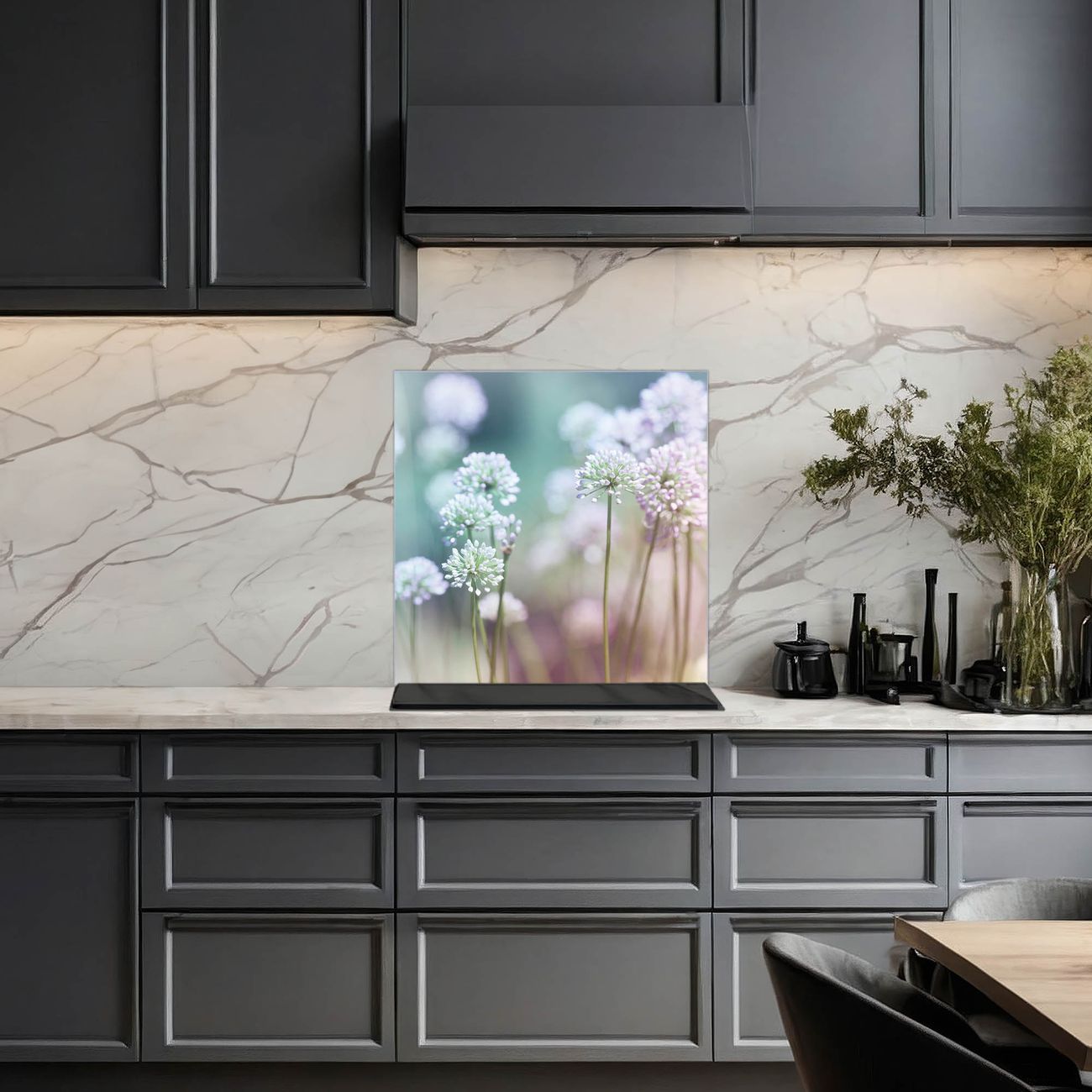 Die banjado Glas Küchenrückwand in verschiedenen Größen mit Motiv Lauchblüte schützt Ihre Küchenfliesen vor Fettspritzern oder Wasserflecken. Der Spritzschutz ist gleichzeitig magnetisch und hält Ihre Rezepte oder Einkaufslisten. 4 Neodym-Magnete und 1 Kreidestift liegen bereits bei. Leuchtende Motive und hochwertiges Material machen den Spritzschutz zum Designobjekt. Das dekorative Glasbild gibt Ihrer Küche ein individuelles Erscheinungsbild. Abgerundete Kanten und Sicherheitsglas sorgen für einen sicheren Einsatz.