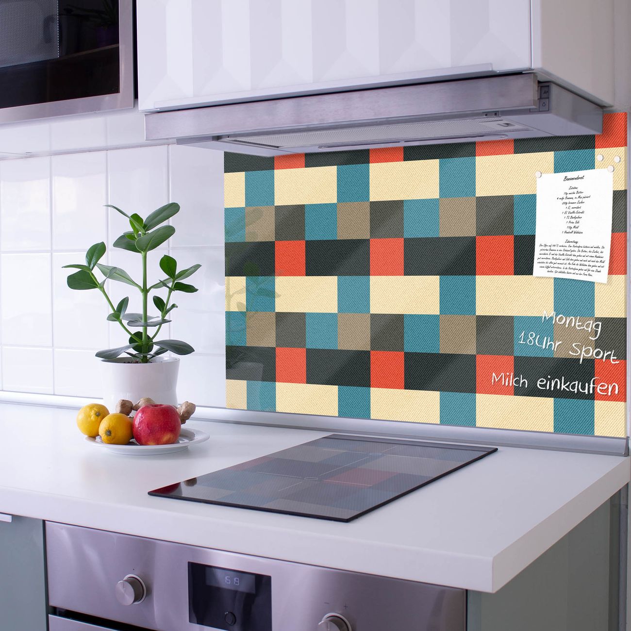 Die Küchenrückwand ist eine elegante Mehrzwecktafel: als Spritzschutz hinter Herd oder Waschbecken, hält Notizen wie ein Memoboard, ist beschreibbar mit Kreidestiften oder Whiteboard-Markern, sieht umwerfend als Glasbild aus. Sie besteht aus gehärtetem Glas, die Rückwand aus einem magnetischen Stahlblech. Durch die superflache Bauweise haben Sie die Wahl aus einer Vielzahl von Befestigungsmöglichkeiten. Sie können die Küchenrückwand mit einem Montagekleber superflach an die Wand kleben oder Sie wählen eines unserer passenden Befestigungssets, welches eine optimale Montage garantiert. Die Küchenrückwand besteht aus zertifiziertem Sicherheitsglas. Durch die mitgelieferten 4 Neodym-Magnete ist Ihre Glas Magnettafel sofort einsatzbereit.
