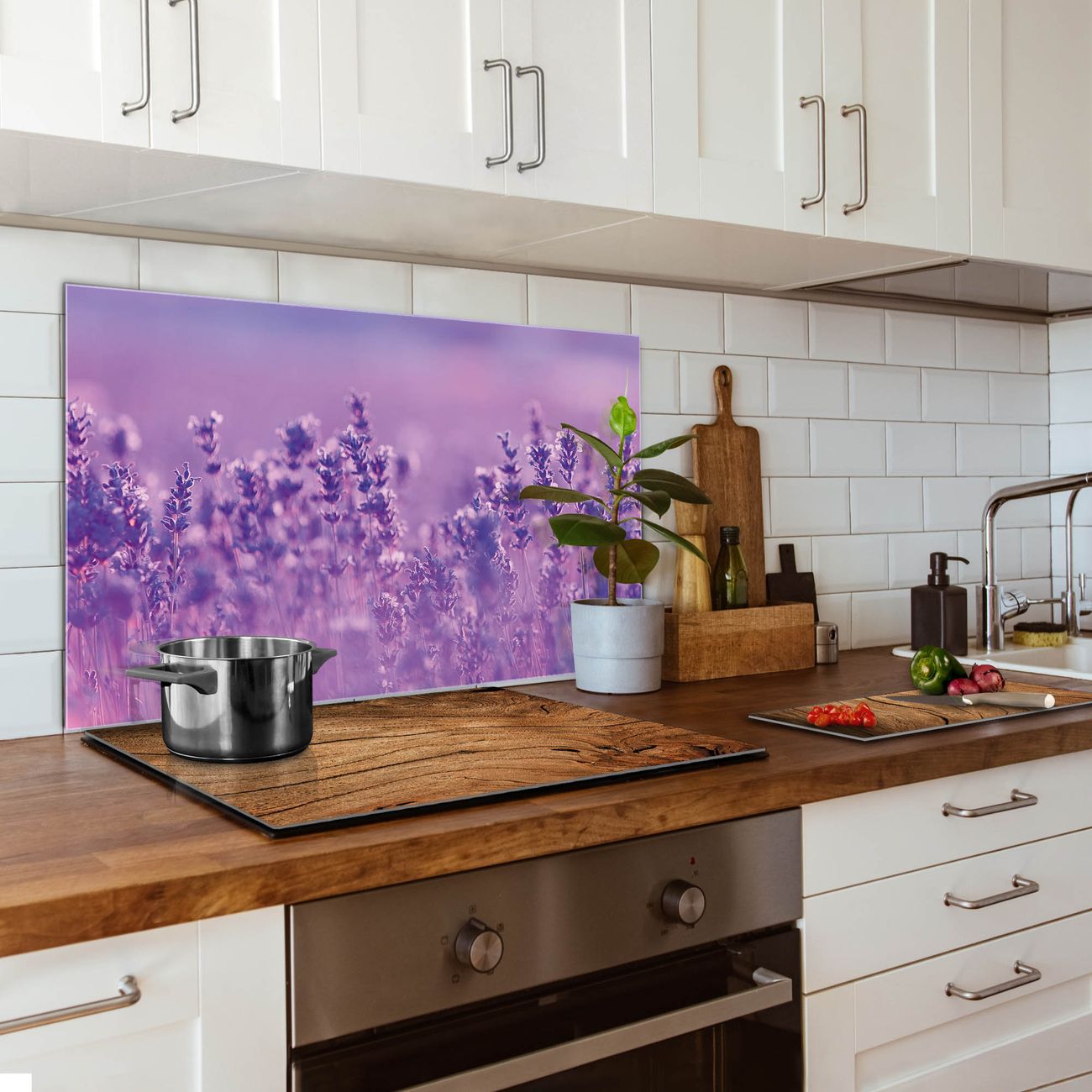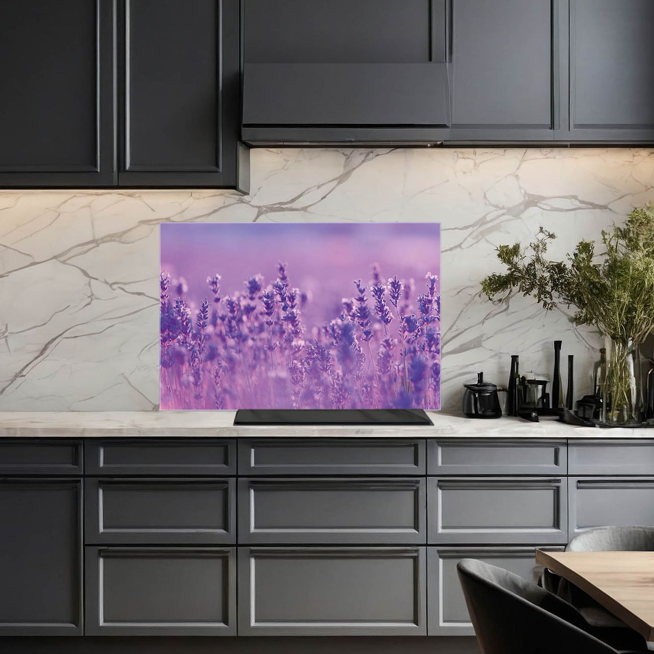 Die banjado Glas Küchenrückwand in verschiedenen Größen mit Motiv Lavendelmeer schützt Ihre Küchenfliesen vor Fettspritzern oder Wasserflecken. Der Spritzschutz ist gleichzeitig magnetisch und hält Ihre Rezepte oder Einkaufslisten. 4 Neodym-Magnete und 1 Kreidestift liegen bereits bei. Leuchtende Motive und hochwertiges Material machen den Spritzschutz zum Designobjekt. Das dekorative Glasbild gibt Ihrer Küche ein individuelles Erscheinungsbild. Abgerundete Kanten und Sicherheitsglas sorgen für einen sicheren Einsatz.
