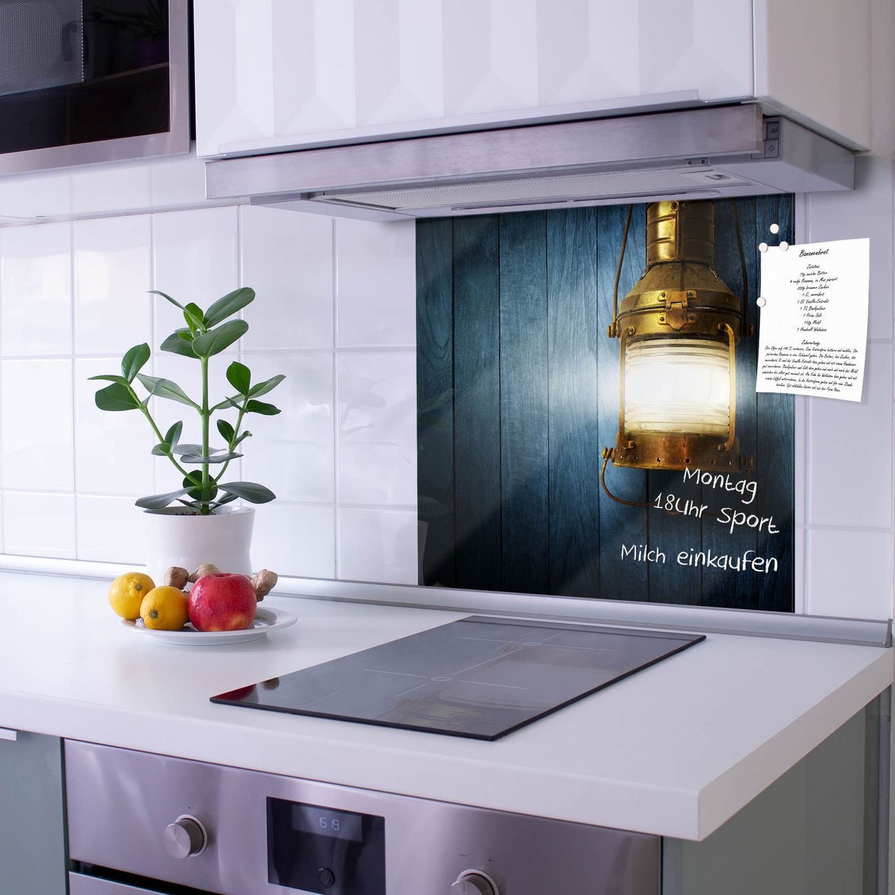 Die banjado Glas Küchenrückwand in verschiedenen Größen mit Motiv Leuchte schützt Ihre Küchenfliesen vor Fettspritzern oder Wasserflecken. Der Spritzschutz ist gleichzeitig magnetisch und hält Ihre Rezepte oder Einkaufslisten. 4 Neodym-Magnete und 1 Kreidestift liegen bereits bei. Leuchtende Motive und hochwertiges Material machen den Spritzschutz zum Designobjekt. Das dekorative Glasbild gibt Ihrer Küche ein individuelles Erscheinungsbild. Abgerundete Kanten und Sicherheitsglas sorgen für einen sicheren Einsatz.