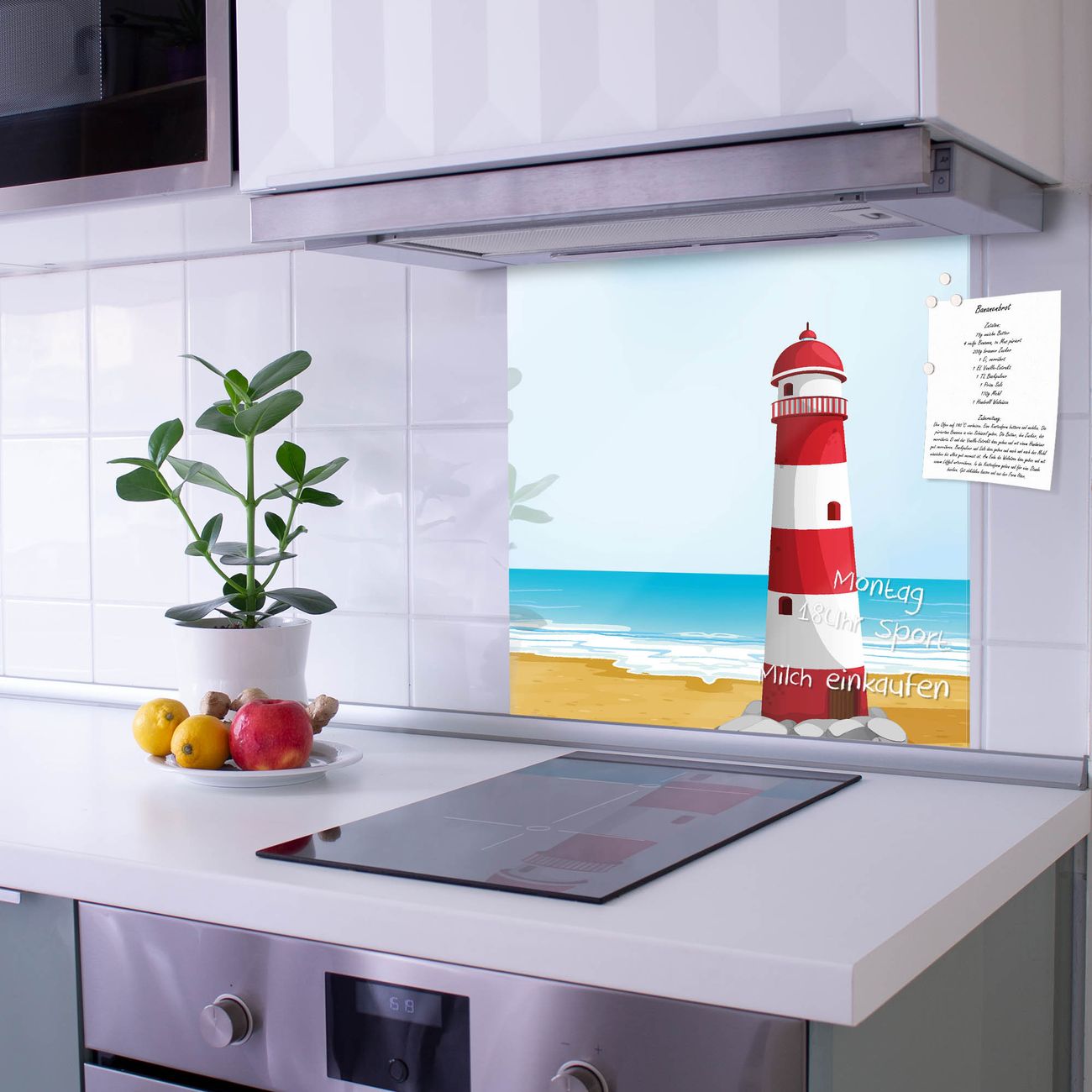 Die banjado Glas Küchenrückwand in verschiedenen Größen mit Motiv Leuchtturm Illustration schützt Ihre Küchenfliesen vor Fettspritzern oder Wasserflecken. Der Spritzschutz ist gleichzeitig magnetisch und hält Ihre Rezepte oder Einkaufslisten. 4 Neodym-Magnete und 1 Kreidestift liegen bereits bei. Leuchtende Motive und hochwertiges Material machen den Spritzschutz zum Designobjekt. Das dekorative Glasbild gibt Ihrer Küche ein individuelles Erscheinungsbild. Abgerundete Kanten und Sicherheitsglas sorgen für einen sicheren Einsatz.