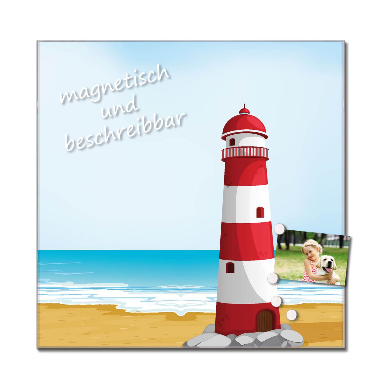 Bitte beachten Sie, dass ausschließlich spezielle Magnete an der Glastafel haften! Wir empfehlen banjado Neodym Magnete, diese sind durch uns auf Wirksamkeit geprüft.