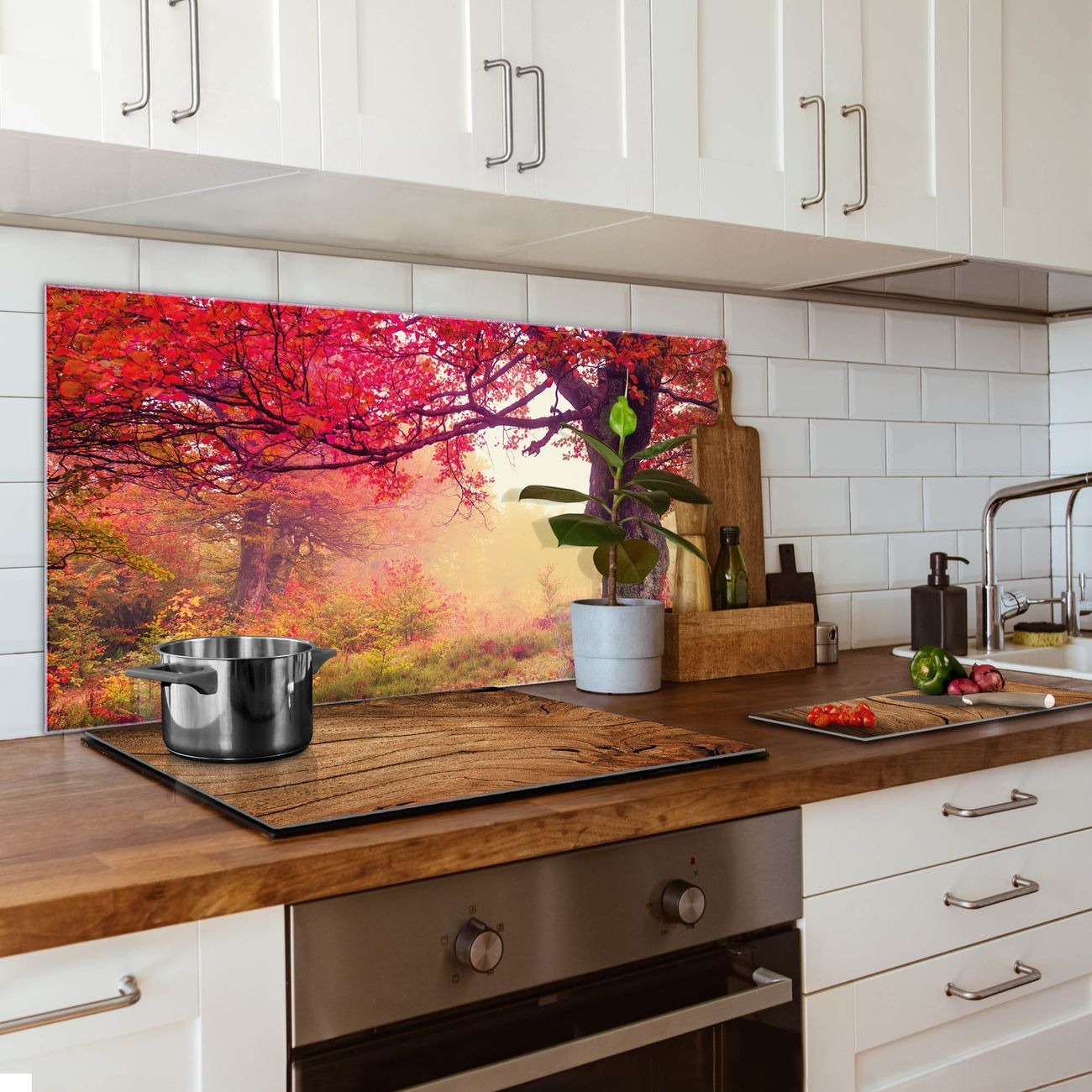 Die banjado Glas Küchenrückwand in verschiedenen Größen mit Motiv Lichtung Im Herbst schützt Ihre Küchenfliesen vor Fettspritzern oder Wasserflecken. Der Spritzschutz ist gleichzeitig magnetisch und hält Ihre Rezepte oder Einkaufslisten. 4 Neodym-Magnete und 1 Kreidestift liegen bereits bei. Leuchtende Motive und hochwertiges Material machen den Spritzschutz zum Designobjekt. Das dekorative Glasbild gibt Ihrer Küche ein individuelles Erscheinungsbild. Abgerundete Kanten und Sicherheitsglas sorgen für einen sicheren Einsatz.
