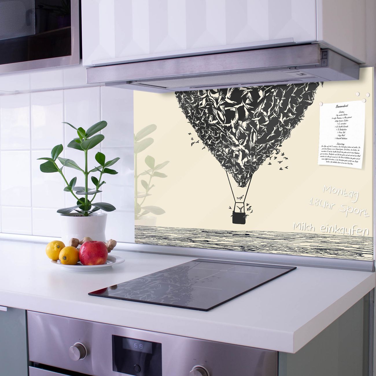 Die Küchenrückwand ist eine elegante Mehrzwecktafel: als Spritzschutz hinter Herd oder Waschbecken, hält Notizen wie ein Memoboard, ist beschreibbar mit Kreidestiften oder Whiteboard-Markern, sieht umwerfend als Glasbild aus. Sie besteht aus gehärtetem Glas, die Rückwand aus einem magnetischen Stahlblech. Durch die superflache Bauweise haben Sie die Wahl aus einer Vielzahl von Befestigungsmöglichkeiten. Sie können die Küchenrückwand mit einem Montagekleber superflach an die Wand kleben oder Sie wählen eines unserer passenden Befestigungssets, welches eine optimale Montage garantiert. Die Küchenrückwand besteht aus zertifiziertem Sicherheitsglas. Durch die mitgelieferten 4 Neodym-Magnete ist Ihre Glas Magnettafel sofort einsatzbereit.