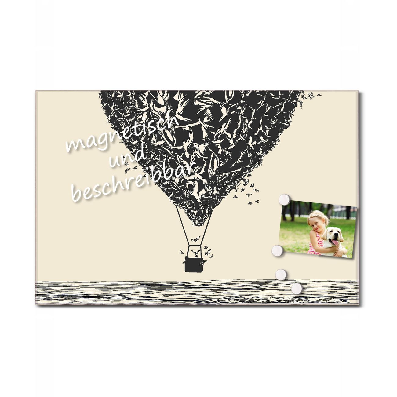 Bitte beachten Sie, dass ausschließlich spezielle Magnete an der Glastafel haften! Wir empfehlen banjado Neodym Magnete, diese sind durch uns auf Wirksamkeit geprüft.