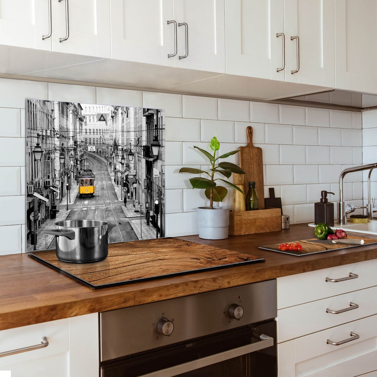 Die banjado Glas Küchenrückwand in verschiedenen Größen mit Motiv Lissabon schützt Ihre Küchenfliesen vor Fettspritzern oder Wasserflecken. Der Spritzschutz ist gleichzeitig magnetisch und hält Ihre Rezepte oder Einkaufslisten. 4 Neodym-Magnete und 1 Kreidestift liegen bereits bei. Leuchtende Motive und hochwertiges Material machen den Spritzschutz zum Designobjekt. Das dekorative Glasbild gibt Ihrer Küche ein individuelles Erscheinungsbild. Abgerundete Kanten und Sicherheitsglas sorgen für einen sicheren Einsatz.