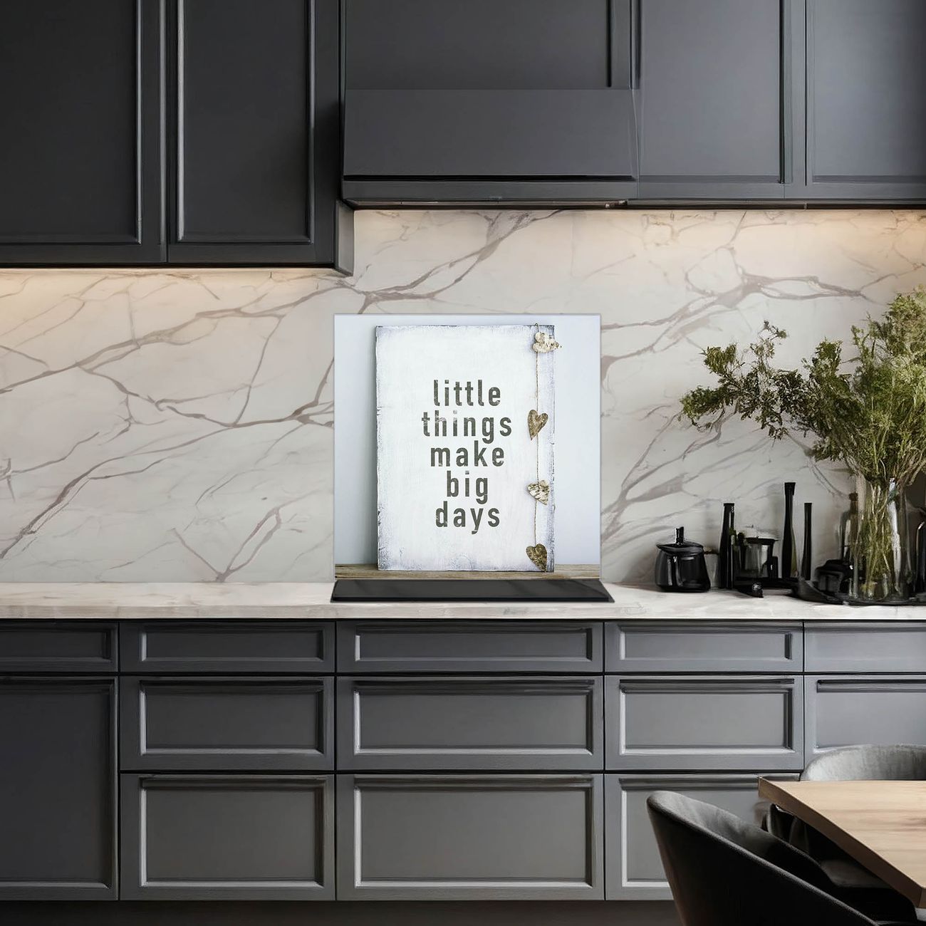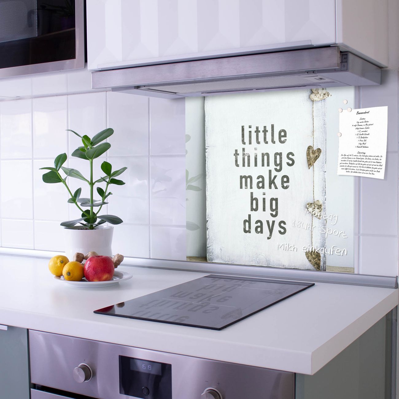 Die banjado Glas Küchenrückwand in verschiedenen Größen mit Motiv Little Things schützt Ihre Küchenfliesen vor Fettspritzern oder Wasserflecken. Der Spritzschutz ist gleichzeitig magnetisch und hält Ihre Rezepte oder Einkaufslisten. 4 Neodym-Magnete und 1 Kreidestift liegen bereits bei. Leuchtende Motive und hochwertiges Material machen den Spritzschutz zum Designobjekt. Das dekorative Glasbild gibt Ihrer Küche ein individuelles Erscheinungsbild. Abgerundete Kanten und Sicherheitsglas sorgen für einen sicheren Einsatz.