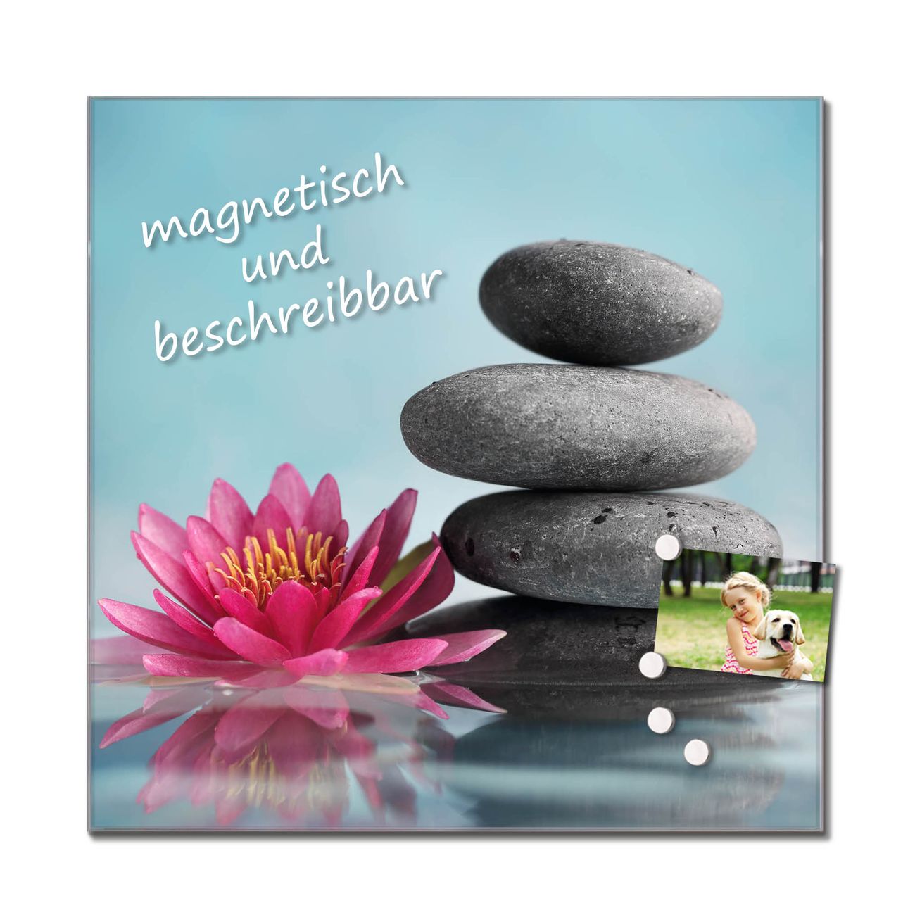Die banjado Glas Küchenrückwand in verschiedenen Größen mit Motiv Lotus Und Steine schützt Ihre Küchenfliesen vor Fettspritzern oder Wasserflecken. Der Spritzschutz ist gleichzeitig magnetisch und hält Ihre Rezepte oder Einkaufslisten. 4 Neodym-Magnete und 1 Kreidestift liegen bereits bei. Leuchtende Motive und hochwertiges Material machen den Spritzschutz zum Designobjekt. Das dekorative Glasbild gibt Ihrer Küche ein individuelles Erscheinungsbild. Abgerundete Kanten und Sicherheitsglas sorgen für einen sicheren Einsatz.