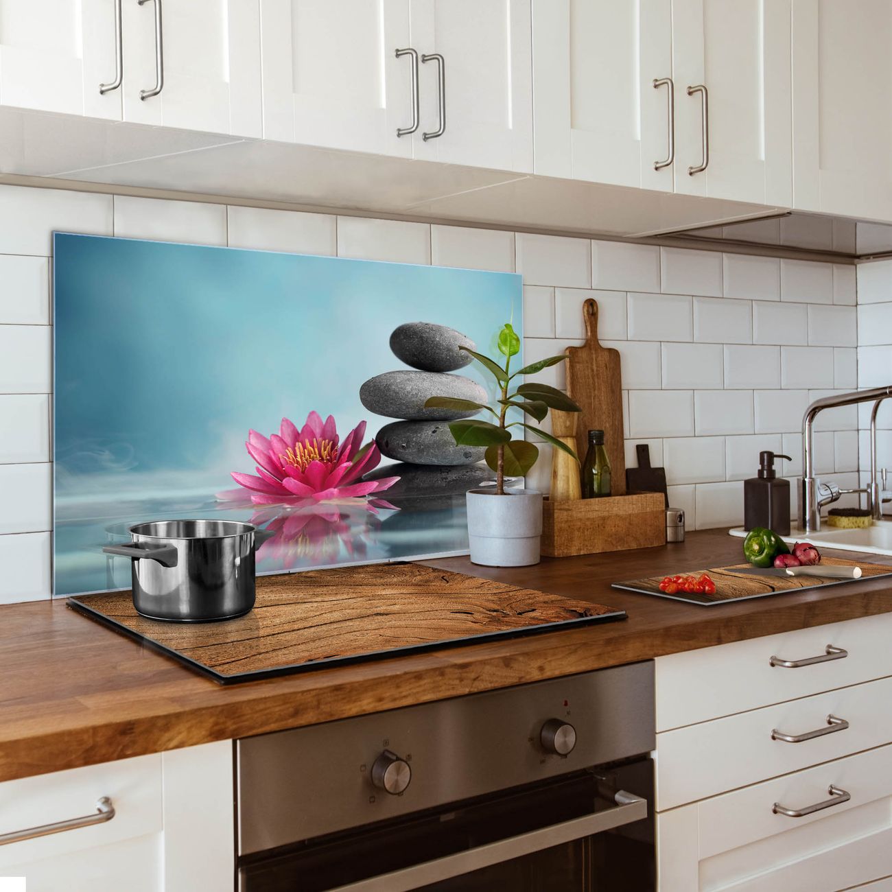 Küchenrückwand Glas Motiv Lotus Und Steine