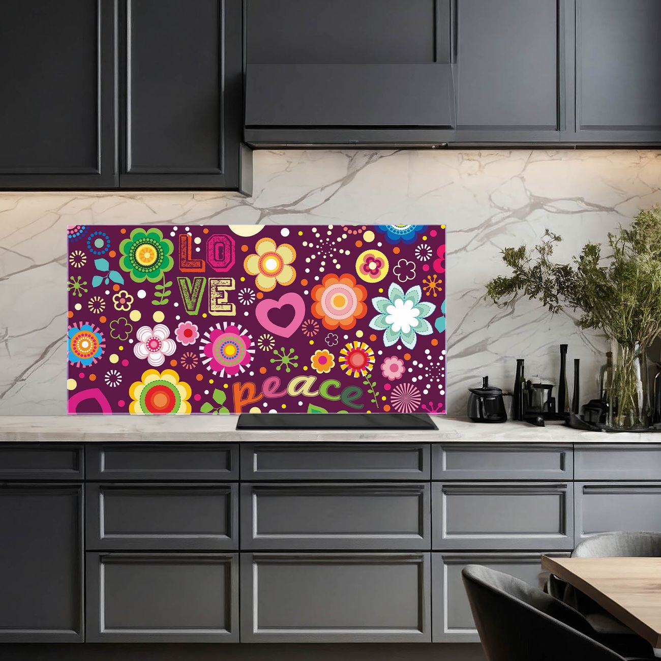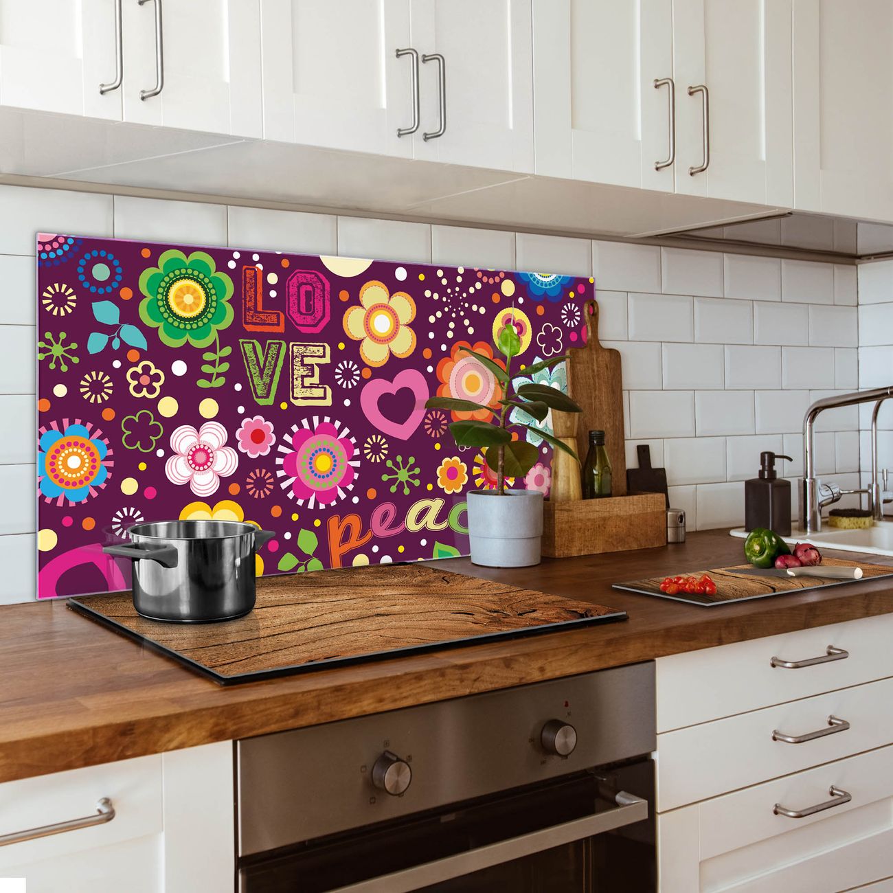 Die banjado Glas Küchenrückwand in verschiedenen Größen mit Motiv Love and Peace schützt Ihre Küchenfliesen vor Fettspritzern oder Wasserflecken. Der Spritzschutz ist gleichzeitig magnetisch und hält Ihre Rezepte oder Einkaufslisten. 4 Neodym-Magnete und 1 Kreidestift liegen bereits bei. Leuchtende Motive und hochwertiges Material machen den Spritzschutz zum Designobjekt. Das dekorative Glasbild gibt Ihrer Küche ein individuelles Erscheinungsbild. Abgerundete Kanten und Sicherheitsglas sorgen für einen sicheren Einsatz.