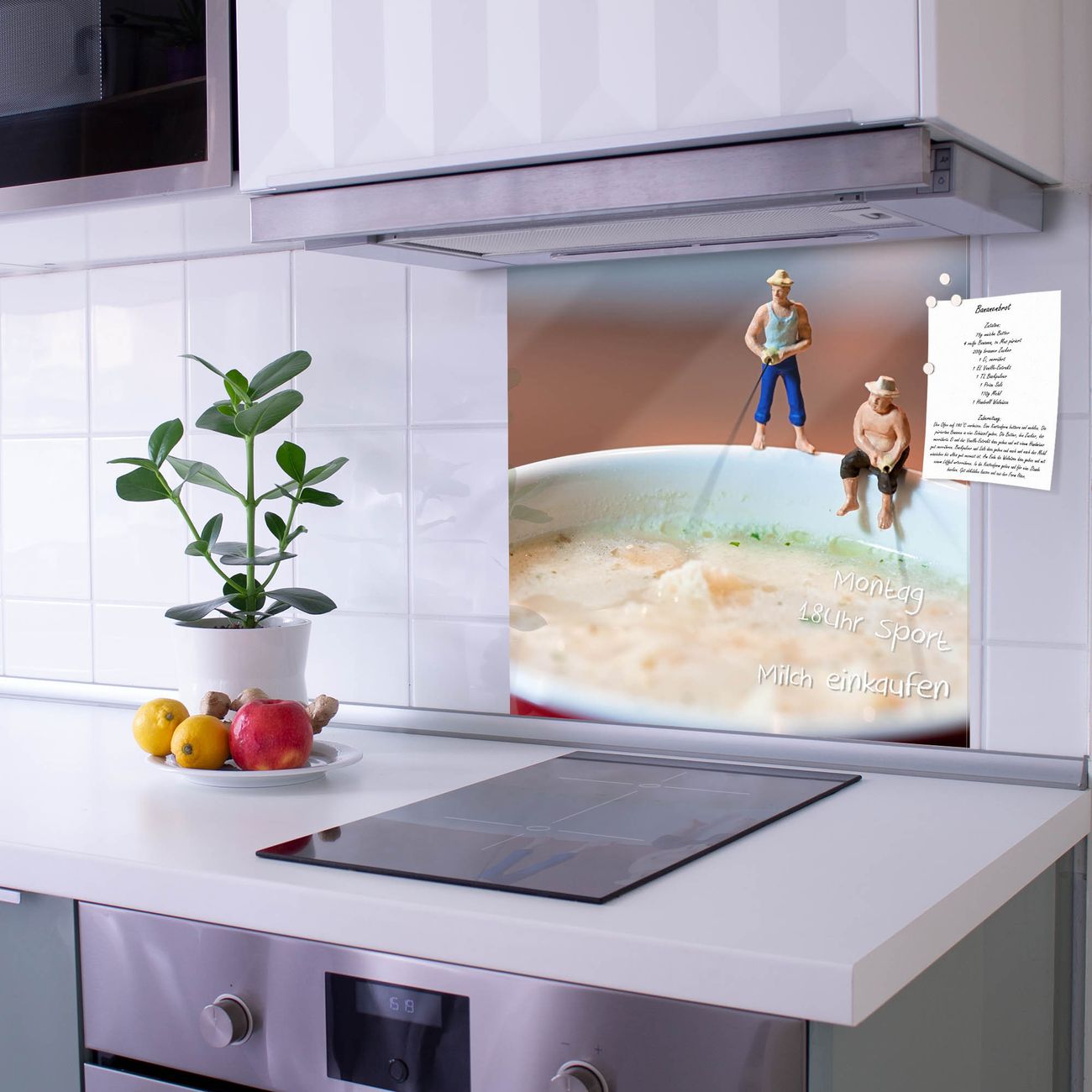 Die Küchenrückwand ist eine elegante Mehrzwecktafel: als Spritzschutz hinter Herd oder Waschbecken, hält Notizen wie ein Memoboard, ist beschreibbar mit Kreidestiften oder Whiteboard-Markern, sieht umwerfend als Glasbild aus. Sie besteht aus gehärtetem Glas, die Rückwand aus einem magnetischen Stahlblech. Durch die superflache Bauweise haben Sie die Wahl aus einer Vielzahl von Befestigungsmöglichkeiten. Sie können die Küchenrückwand mit einem Montagekleber superflach an die Wand kleben oder Sie wählen eines unserer passenden Befestigungssets, welches eine optimale Montage garantiert. Die Küchenrückwand besteht aus zertifiziertem Sicherheitsglas. Durch die mitgelieferten 4 Neodym-Magnete ist Ihre Glas Magnettafel sofort einsatzbereit.