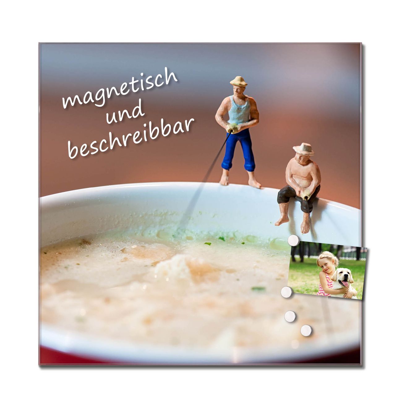 Bitte beachten Sie, dass ausschließlich spezielle Magnete an der Glastafel haften! Wir empfehlen banjado Neodym Magnete, diese sind durch uns auf Wirksamkeit geprüft.