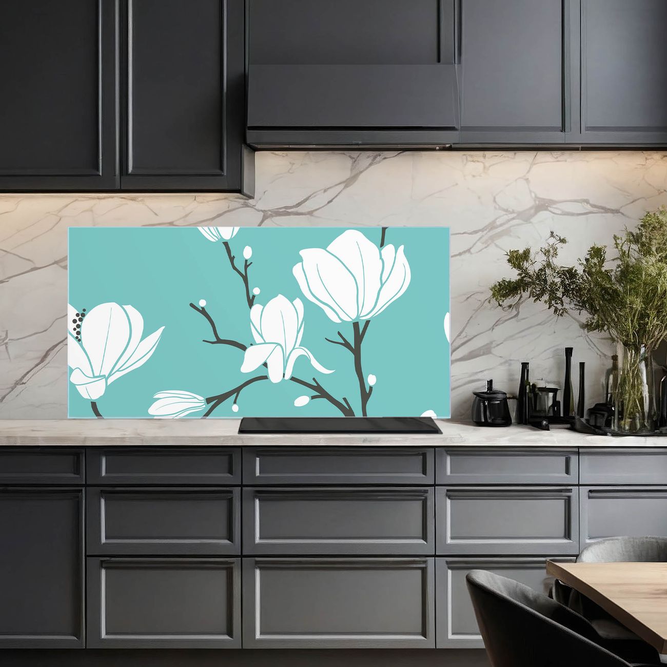 Die banjado Glas Küchenrückwand in verschiedenen Größen mit Motiv Magnolien schützt Ihre Küchenfliesen vor Fettspritzern oder Wasserflecken. Der Spritzschutz ist gleichzeitig magnetisch und hält Ihre Rezepte oder Einkaufslisten. 4 Neodym-Magnete und 1 Kreidestift liegen bereits bei. Leuchtende Motive und hochwertiges Material machen den Spritzschutz zum Designobjekt. Das dekorative Glasbild gibt Ihrer Küche ein individuelles Erscheinungsbild. Abgerundete Kanten und Sicherheitsglas sorgen für einen sicheren Einsatz.
