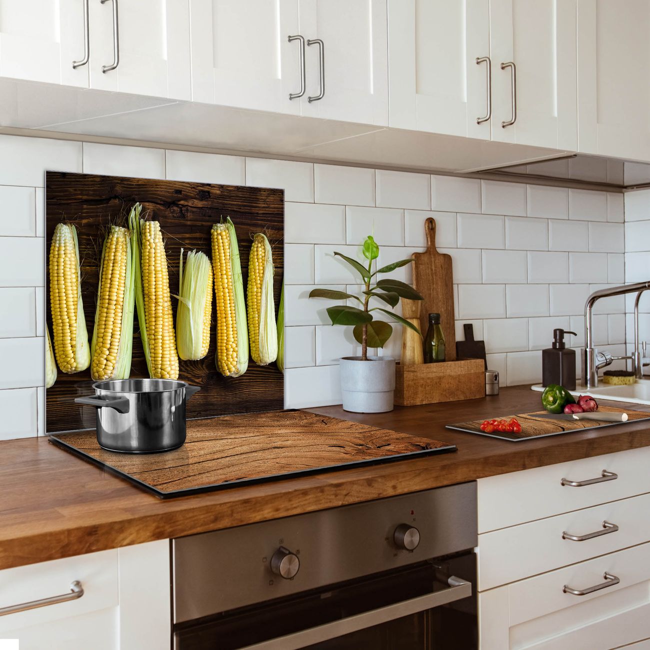 Die banjado Glas Küchenrückwand in verschiedenen Größen mit Motiv Maiskolben schützt Ihre Küchenfliesen vor Fettspritzern oder Wasserflecken. Der Spritzschutz ist gleichzeitig magnetisch und hält Ihre Rezepte oder Einkaufslisten. 4 Neodym-Magnete und 1 Kreidestift liegen bereits bei. Leuchtende Motive und hochwertiges Material machen den Spritzschutz zum Designobjekt. Das dekorative Glasbild gibt Ihrer Küche ein individuelles Erscheinungsbild. Abgerundete Kanten und Sicherheitsglas sorgen für einen sicheren Einsatz.