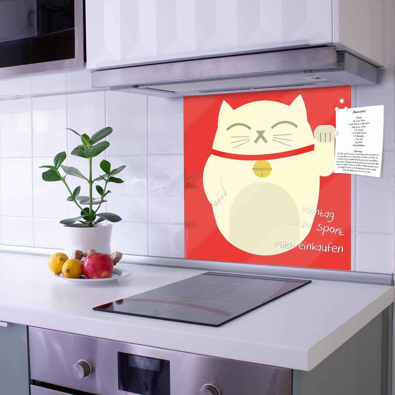 Die banjado Glas Küchenrückwand in verschiedenen Größen mit Motiv Manekineko schützt Ihre Küchenfliesen vor Fettspritzern oder Wasserflecken. Der Spritzschutz ist gleichzeitig magnetisch und hält Ihre Rezepte oder Einkaufslisten. 4 Neodym-Magnete und 1 Kreidestift liegen bereits bei. Leuchtende Motive und hochwertiges Material machen den Spritzschutz zum Designobjekt. Das dekorative Glasbild gibt Ihrer Küche ein individuelles Erscheinungsbild. Abgerundete Kanten und Sicherheitsglas sorgen für einen sicheren Einsatz.