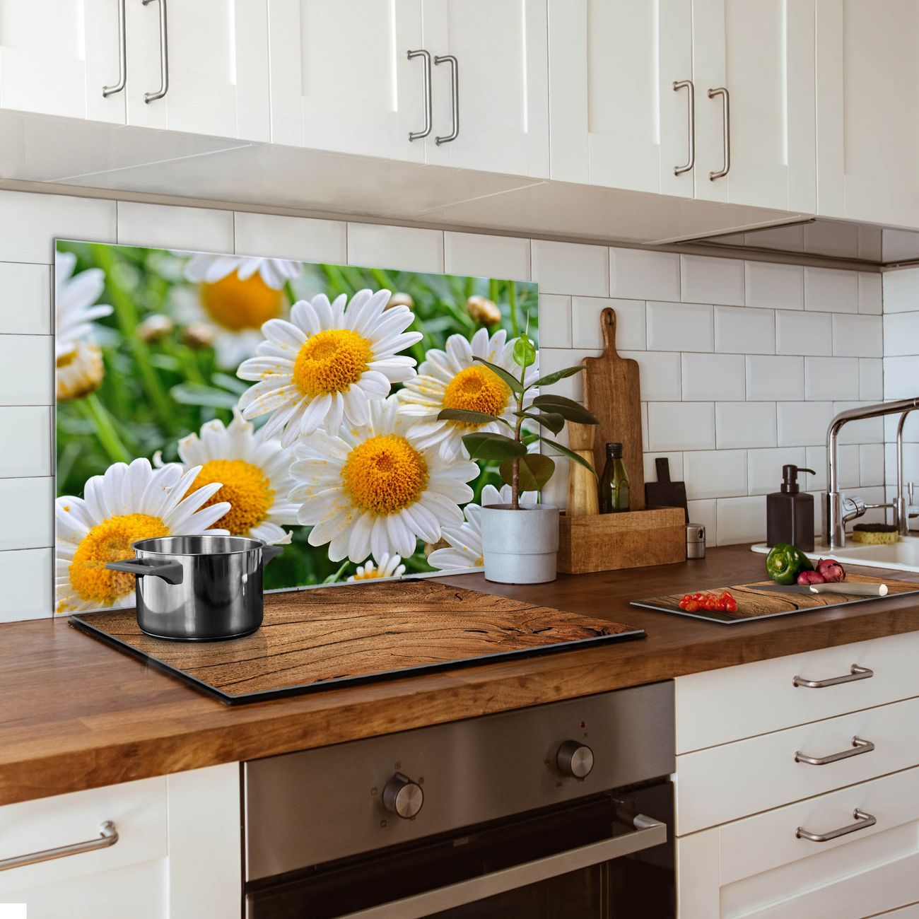Küchenrückwand Glas Motiv Margeriten Illustration