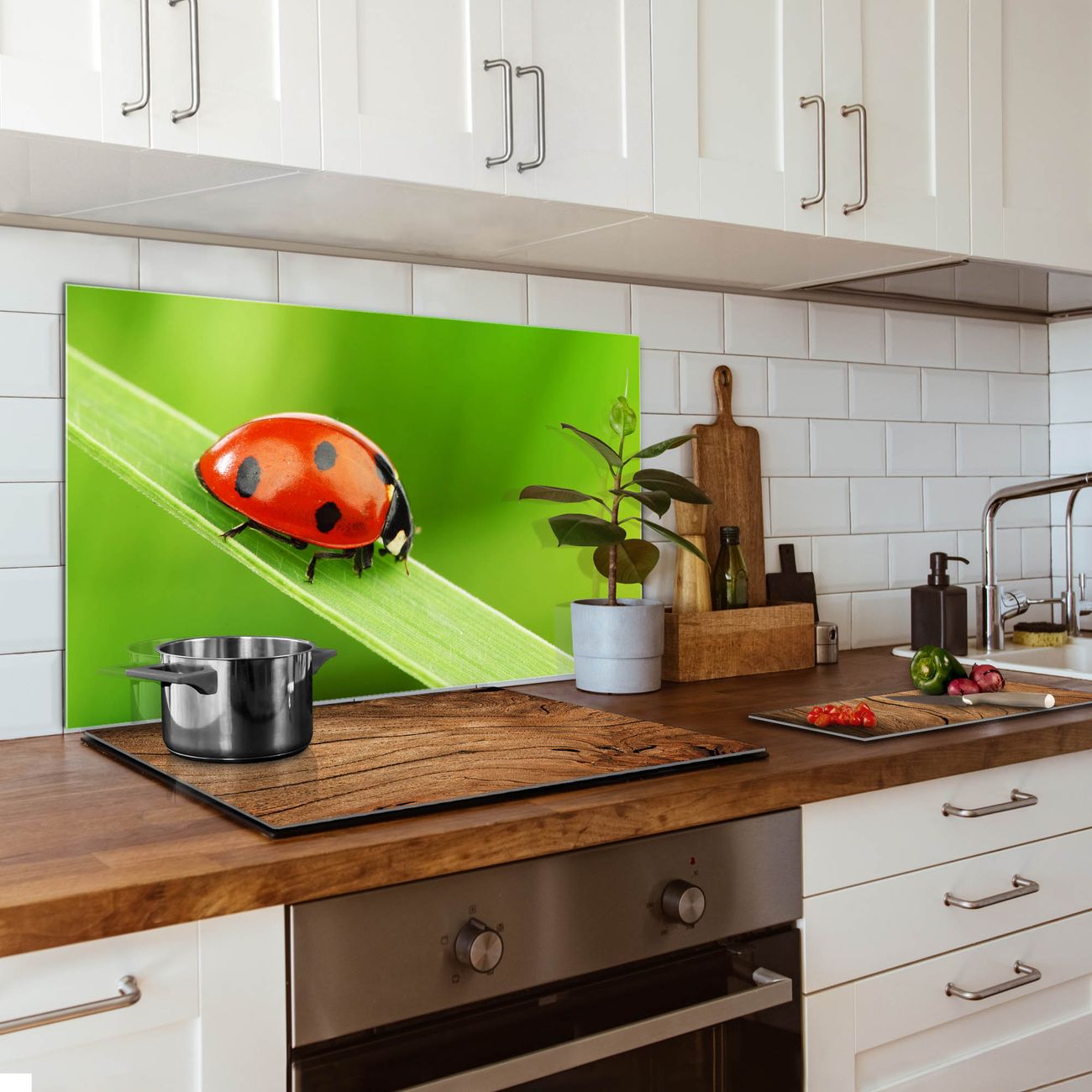 Die banjado Glas Küchenrückwand in verschiedenen Größen mit Motiv Marienkäfer schützt Ihre Küchenfliesen vor Fettspritzern oder Wasserflecken. Der Spritzschutz ist gleichzeitig magnetisch und hält Ihre Rezepte oder Einkaufslisten. 4 Neodym-Magnete und 1 Kreidestift liegen bereits bei. Leuchtende Motive und hochwertiges Material machen den Spritzschutz zum Designobjekt. Das dekorative Glasbild gibt Ihrer Küche ein individuelles Erscheinungsbild. Abgerundete Kanten und Sicherheitsglas sorgen für einen sicheren Einsatz.