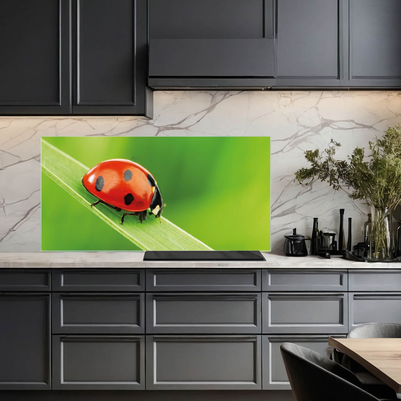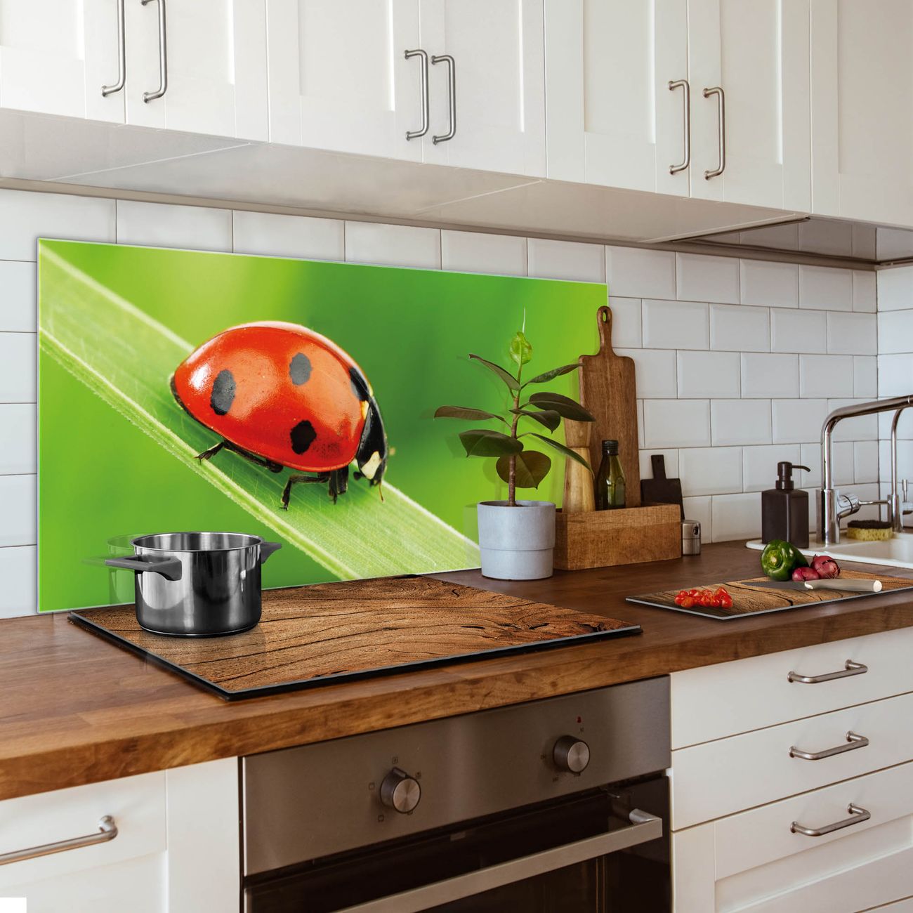 Die banjado Glas Küchenrückwand in verschiedenen Größen mit Motiv Marienkäfer schützt Ihre Küchenfliesen vor Fettspritzern oder Wasserflecken. Der Spritzschutz ist gleichzeitig magnetisch und hält Ihre Rezepte oder Einkaufslisten. 4 Neodym-Magnete und 1 Kreidestift liegen bereits bei. Leuchtende Motive und hochwertiges Material machen den Spritzschutz zum Designobjekt. Das dekorative Glasbild gibt Ihrer Küche ein individuelles Erscheinungsbild. Abgerundete Kanten und Sicherheitsglas sorgen für einen sicheren Einsatz.