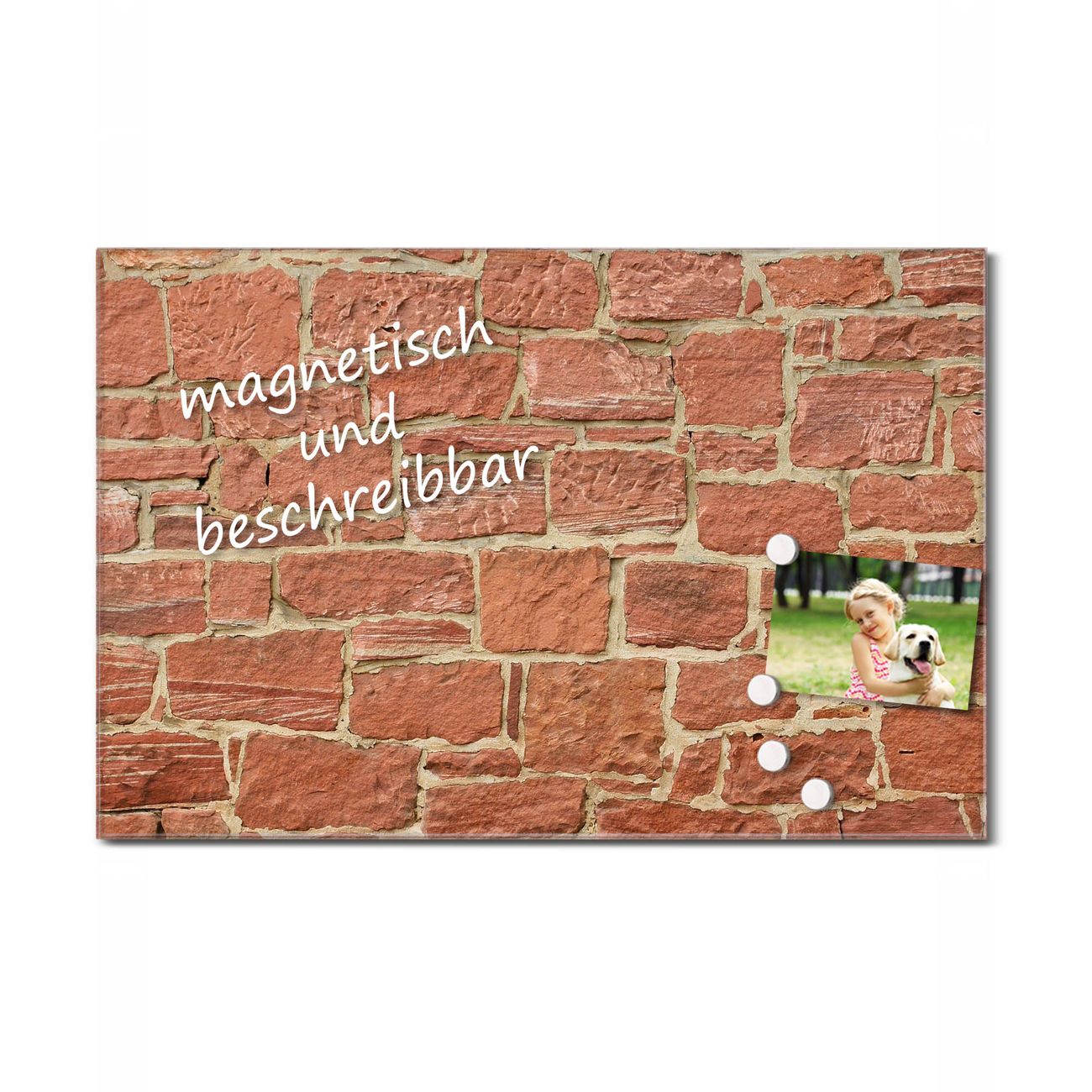 Bitte beachten Sie, dass ausschließlich spezielle Magnete an der Glastafel haften! Wir empfehlen banjado Neodym Magnete, diese sind durch uns auf Wirksamkeit geprüft.