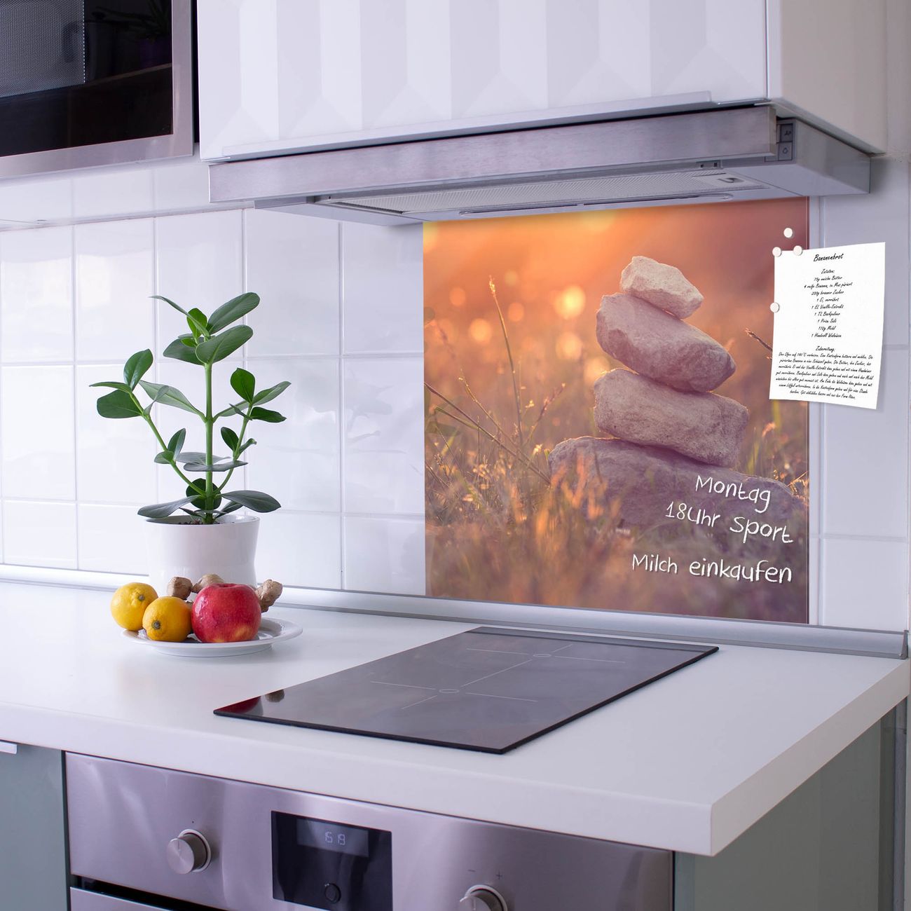 Die Küchenrückwand ist eine elegante Mehrzwecktafel: als Spritzschutz hinter Herd oder Waschbecken, hält Notizen wie ein Memoboard, ist beschreibbar mit Kreidestiften oder Whiteboard-Markern, sieht umwerfend als Glasbild aus. Sie besteht aus gehärtetem Glas, die Rückwand aus einem magnetischen Stahlblech. Durch die superflache Bauweise haben Sie die Wahl aus einer Vielzahl von Befestigungsmöglichkeiten. Sie können die Küchenrückwand mit einem Montagekleber superflach an die Wand kleben oder Sie wählen eines unserer passenden Befestigungssets, welches eine optimale Montage garantiert. Die Küchenrückwand besteht aus zertifiziertem Sicherheitsglas. Durch die mitgelieferten 4 Neodym-Magnete ist Ihre Glas Magnettafel sofort einsatzbereit.