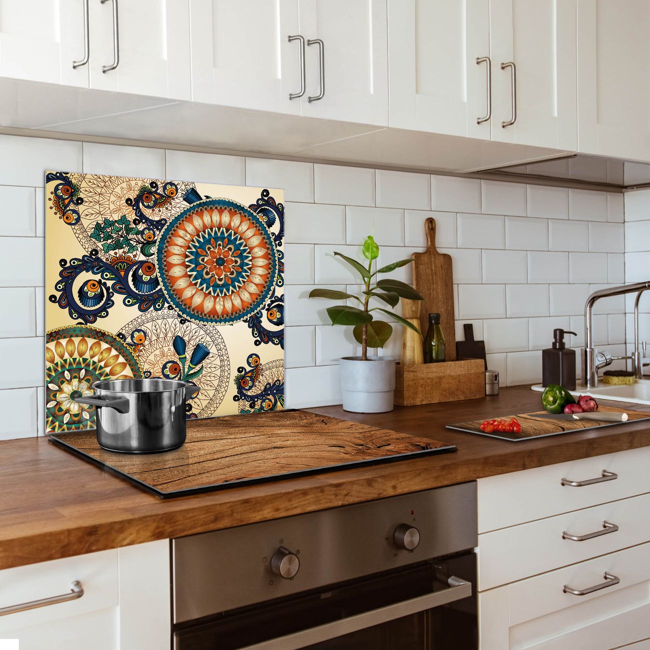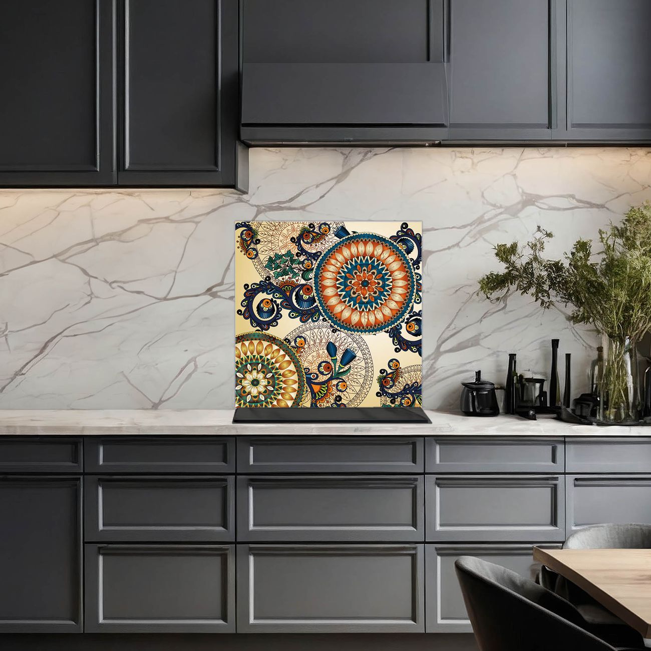 Die banjado Glas Küchenrückwand in verschiedenen Größen mit Motiv Modernes Mandala schützt Ihre Küchenfliesen vor Fettspritzern oder Wasserflecken. Der Spritzschutz ist gleichzeitig magnetisch und hält Ihre Rezepte oder Einkaufslisten. 4 Neodym-Magnete und 1 Kreidestift liegen bereits bei. Leuchtende Motive und hochwertiges Material machen den Spritzschutz zum Designobjekt. Das dekorative Glasbild gibt Ihrer Küche ein individuelles Erscheinungsbild. Abgerundete Kanten und Sicherheitsglas sorgen für einen sicheren Einsatz.