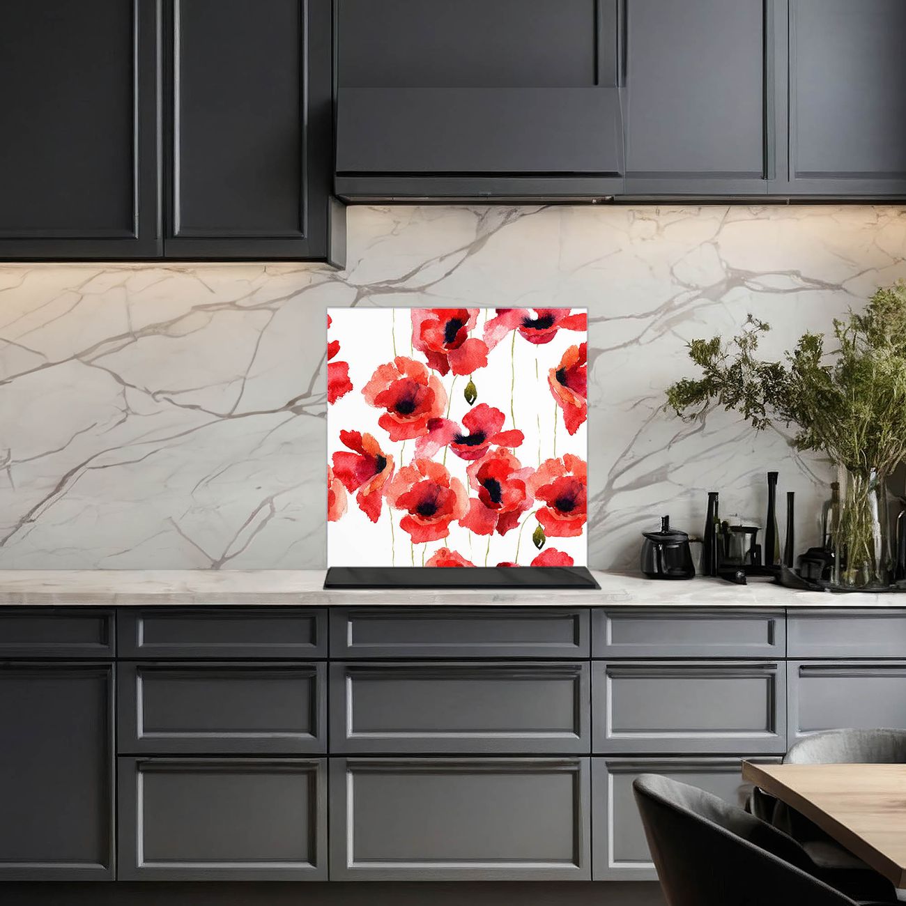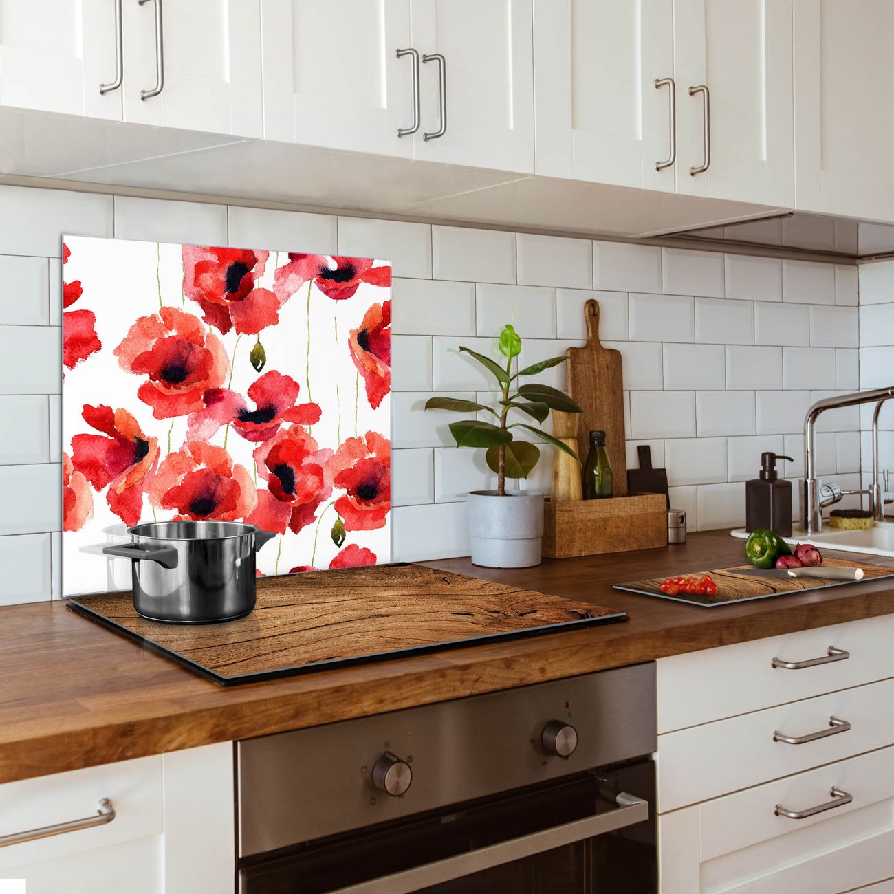 Küchenrückwand Glas Motiv Mohn Aquarell