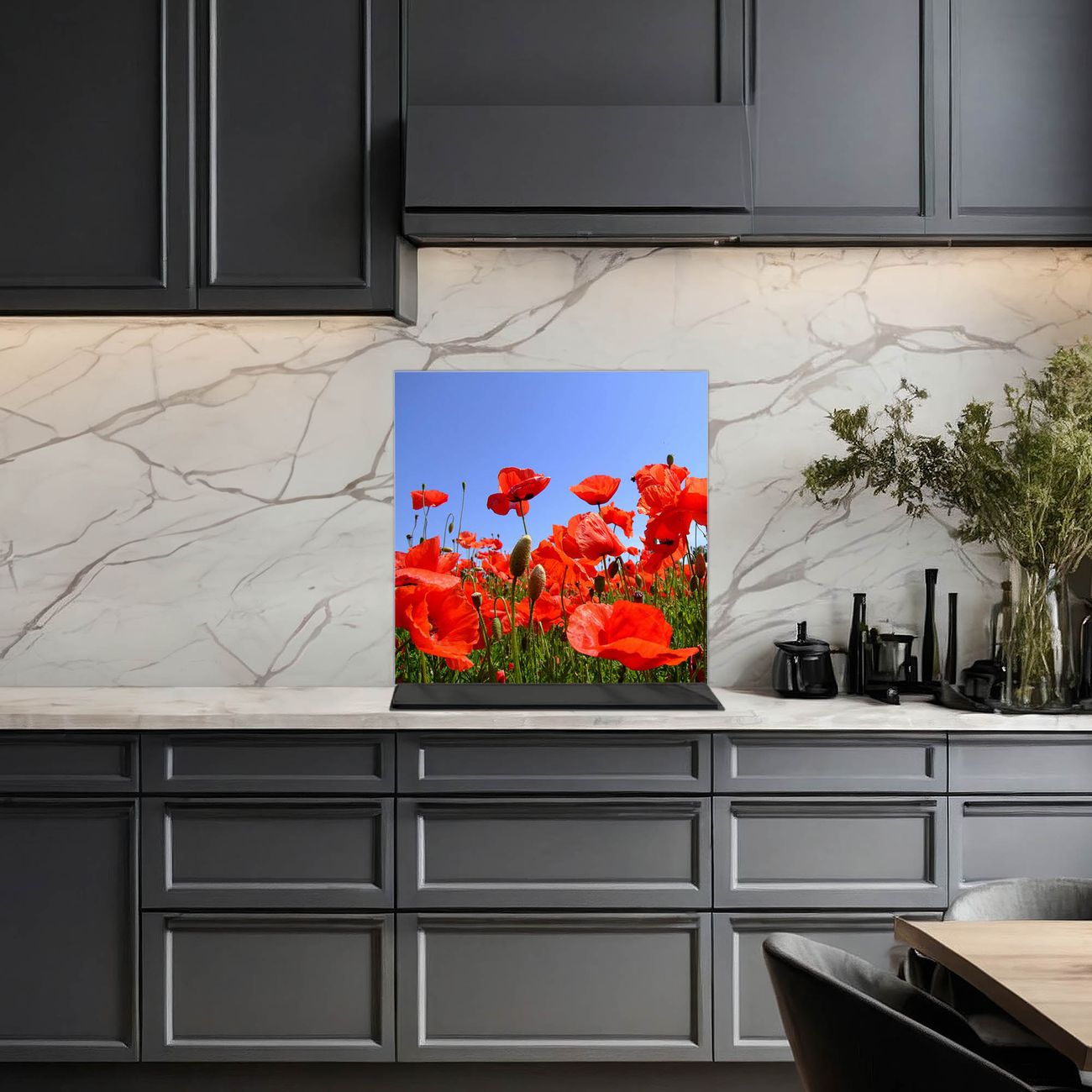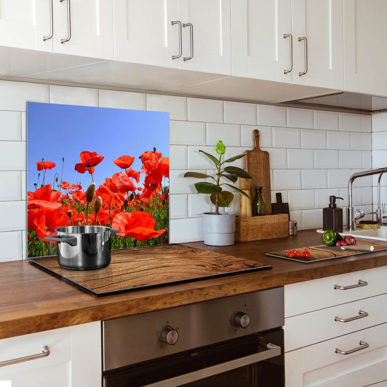 Die banjado Glas Küchenrückwand in verschiedenen Größen mit Motiv Mohnblumen schützt Ihre Küchenfliesen vor Fettspritzern oder Wasserflecken. Der Spritzschutz ist gleichzeitig magnetisch und hält Ihre Rezepte oder Einkaufslisten. 4 Neodym-Magnete und 1 Kreidestift liegen bereits bei. Leuchtende Motive und hochwertiges Material machen den Spritzschutz zum Designobjekt. Das dekorative Glasbild gibt Ihrer Küche ein individuelles Erscheinungsbild. Abgerundete Kanten und Sicherheitsglas sorgen für einen sicheren Einsatz.