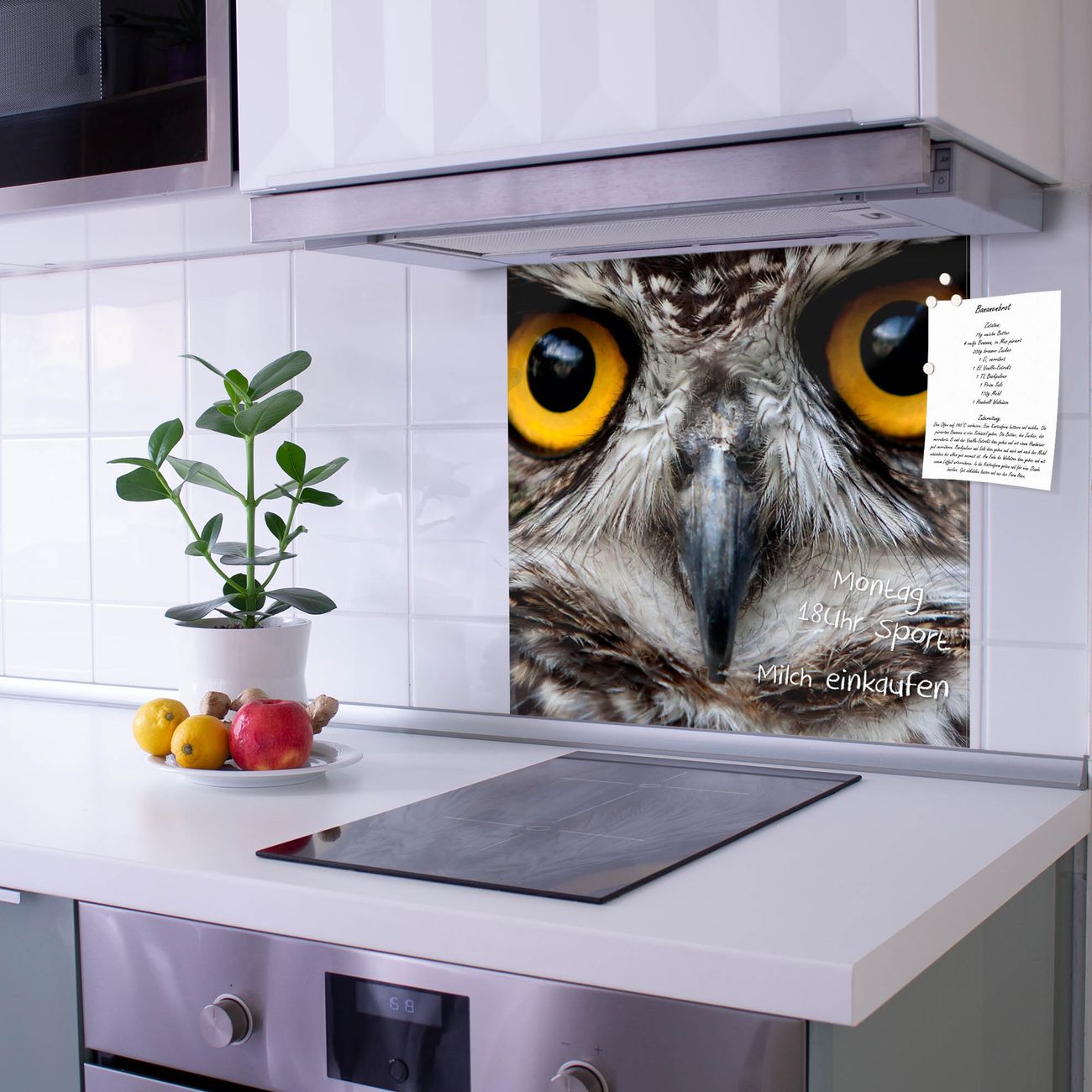 Die Küchenrückwand ist eine elegante Mehrzwecktafel: als Spritzschutz hinter Herd oder Waschbecken, hält Notizen wie ein Memoboard, ist beschreibbar mit Kreidestiften oder Whiteboard-Markern, sieht umwerfend als Glasbild aus. Sie besteht aus gehärtetem Glas, die Rückwand aus einem magnetischen Stahlblech. Durch die superflache Bauweise haben Sie die Wahl aus einer Vielzahl von Befestigungsmöglichkeiten. Sie können die Küchenrückwand mit einem Montagekleber superflach an die Wand kleben oder Sie wählen eines unserer passenden Befestigungssets, welches eine optimale Montage garantiert. Die Küchenrückwand besteht aus zertifiziertem Sicherheitsglas. Durch die mitgelieferten 4 Neodym-Magnete ist Ihre Glas Magnettafel sofort einsatzbereit.