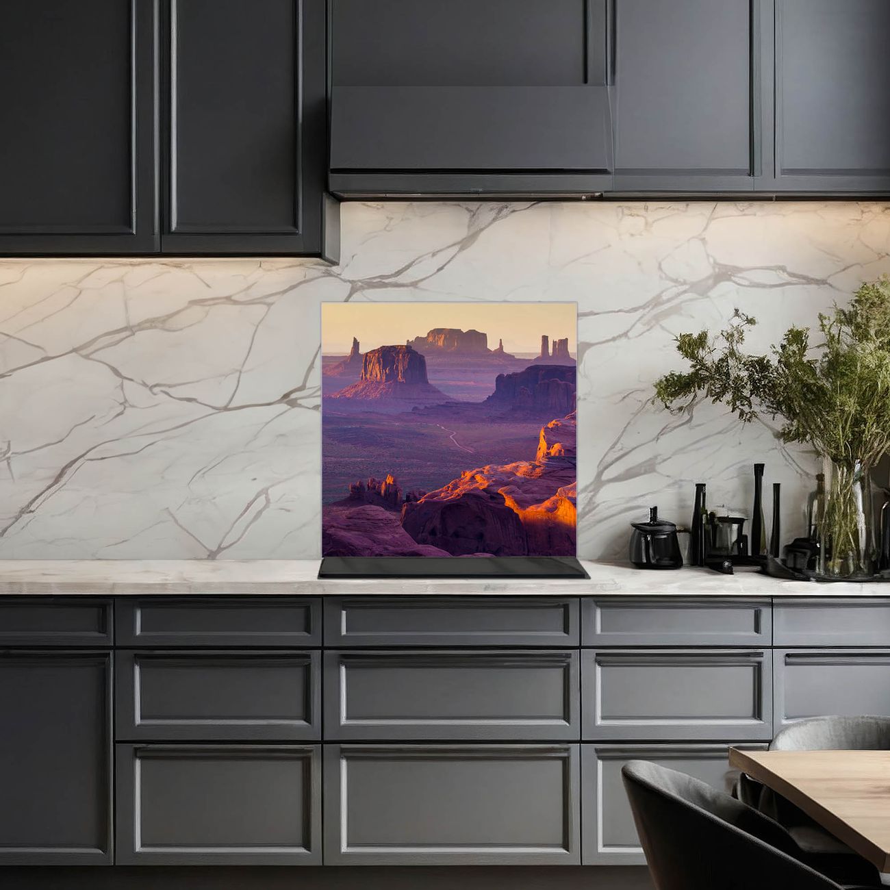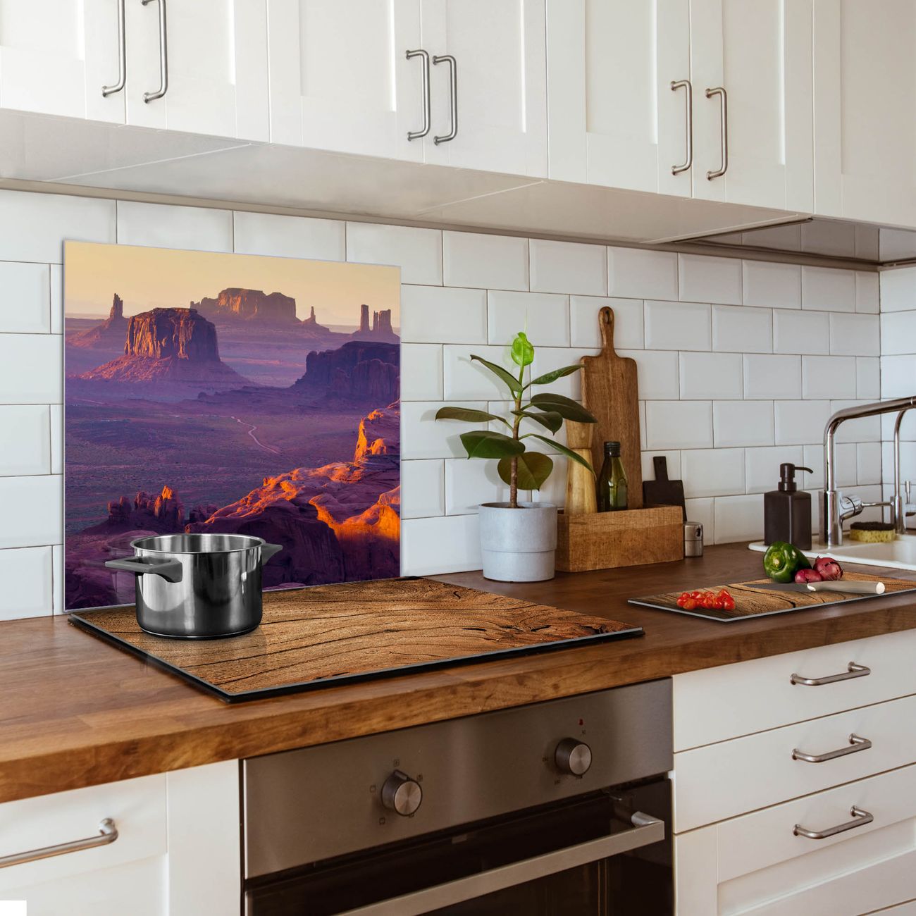 Die banjado Glas Küchenrückwand in verschiedenen Größen mit Motiv Monument Valley schützt Ihre Küchenfliesen vor Fettspritzern oder Wasserflecken. Der Spritzschutz ist gleichzeitig magnetisch und hält Ihre Rezepte oder Einkaufslisten. 4 Neodym-Magnete und 1 Kreidestift liegen bereits bei. Leuchtende Motive und hochwertiges Material machen den Spritzschutz zum Designobjekt. Das dekorative Glasbild gibt Ihrer Küche ein individuelles Erscheinungsbild. Abgerundete Kanten und Sicherheitsglas sorgen für einen sicheren Einsatz.