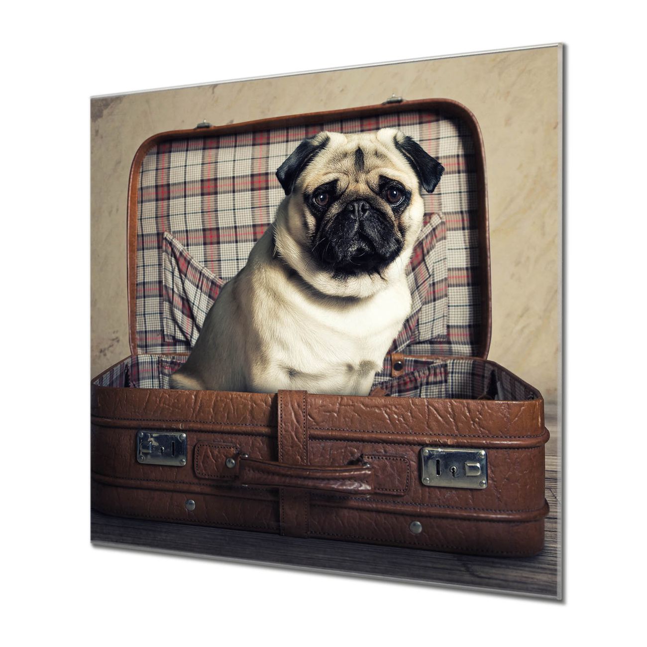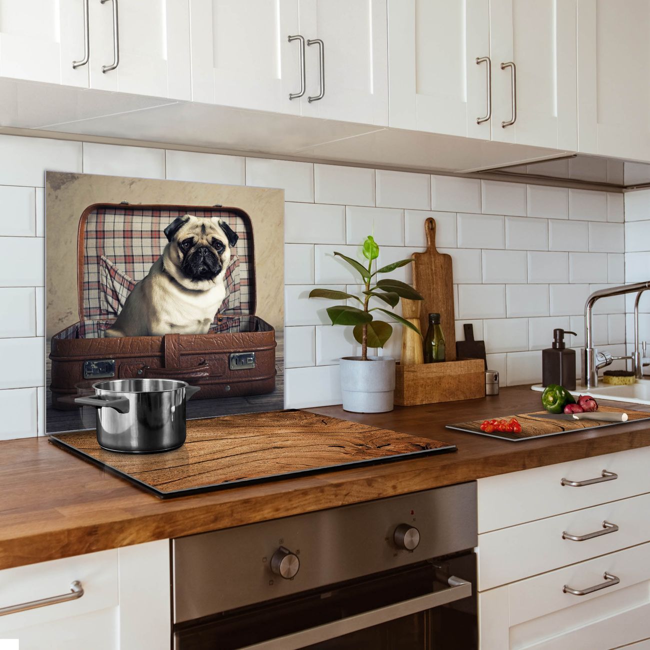 Die banjado Glas Küchenrückwand in verschiedenen Größen mit Motiv Mops im Koffer schützt Ihre Küchenfliesen vor Fettspritzern oder Wasserflecken. Der Spritzschutz ist gleichzeitig magnetisch und hält Ihre Rezepte oder Einkaufslisten. 4 Neodym-Magnete und 1 Kreidestift liegen bereits bei. Leuchtende Motive und hochwertiges Material machen den Spritzschutz zum Designobjekt. Das dekorative Glasbild gibt Ihrer Küche ein individuelles Erscheinungsbild. Abgerundete Kanten und Sicherheitsglas sorgen für einen sicheren Einsatz.