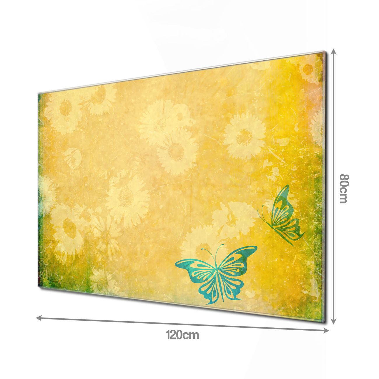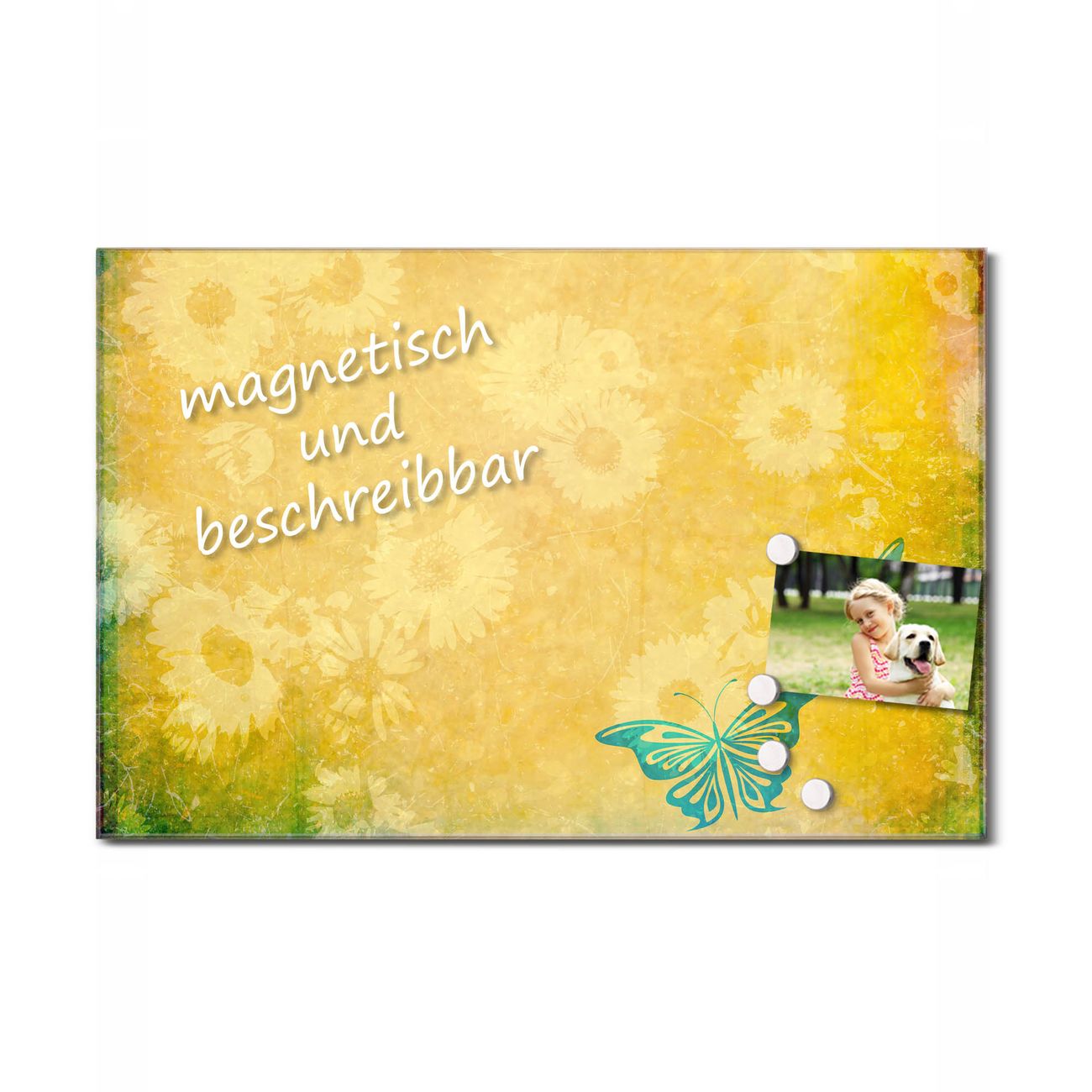 Material  4mm Sicherheitsglas mit Metallrückwand Eigenschaften  beschreibbar, magnetisch, kratzfest Maße  80x120x0,6cm, 14,4 kg schwer Motiv  Nummer 10365 Muster Sommer Zubehör  inklusive 4 Neodym-Magnete
