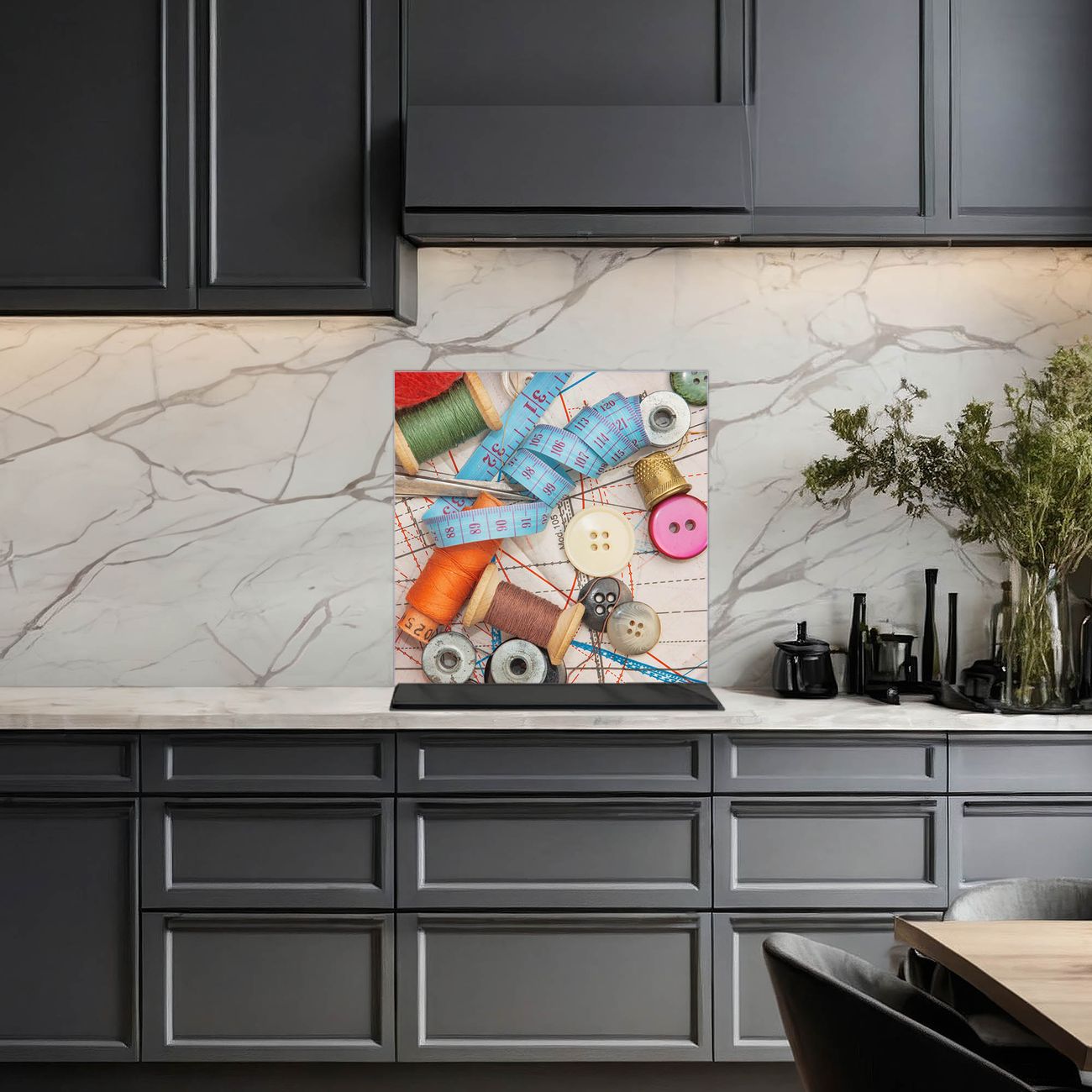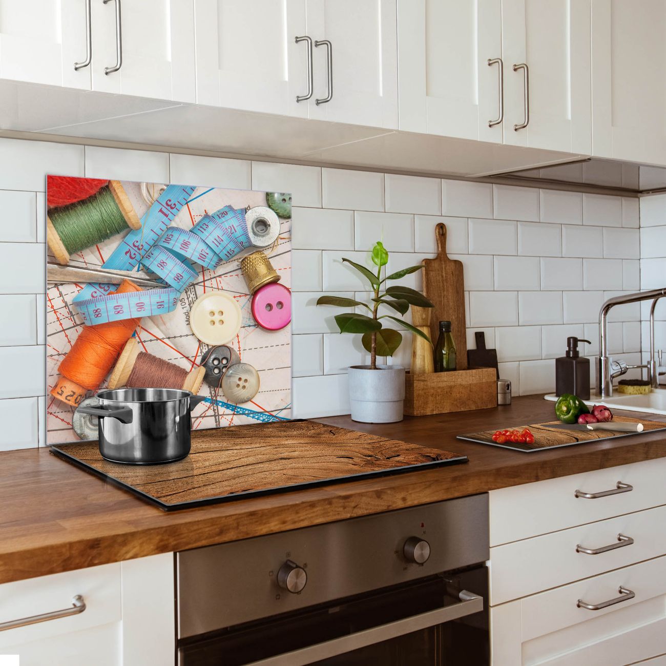 Die banjado Glas Küchenrückwand in verschiedenen Größen mit Motiv Nähen schützt Ihre Küchenfliesen vor Fettspritzern oder Wasserflecken. Der Spritzschutz ist gleichzeitig magnetisch und hält Ihre Rezepte oder Einkaufslisten. 4 Neodym-Magnete und 1 Kreidestift liegen bereits bei. Leuchtende Motive und hochwertiges Material machen den Spritzschutz zum Designobjekt. Das dekorative Glasbild gibt Ihrer Küche ein individuelles Erscheinungsbild. Abgerundete Kanten und Sicherheitsglas sorgen für einen sicheren Einsatz.