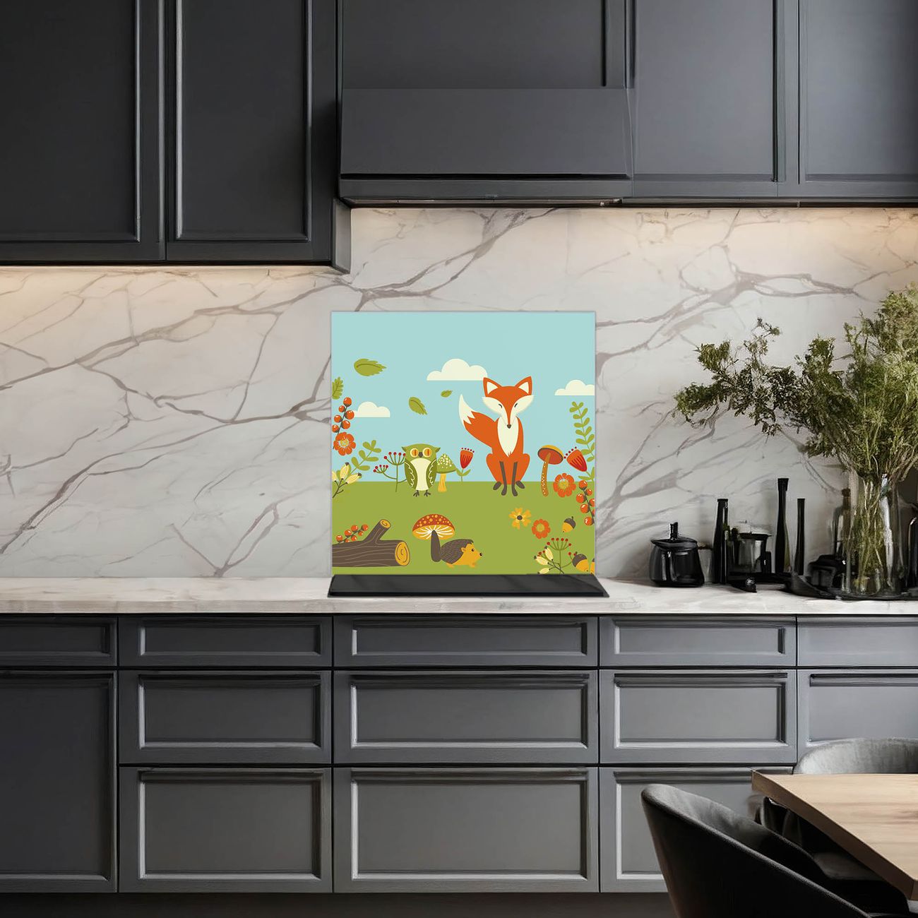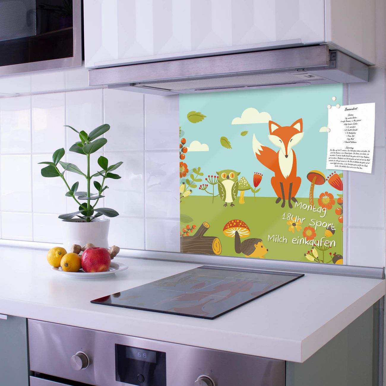 Die banjado Glas Küchenrückwand in verschiedenen Größen mit Motiv Neulich Im Wald schützt Ihre Küchenfliesen vor Fettspritzern oder Wasserflecken. Der Spritzschutz ist gleichzeitig magnetisch und hält Ihre Rezepte oder Einkaufslisten. 4 Neodym-Magnete und 1 Kreidestift liegen bereits bei. Leuchtende Motive und hochwertiges Material machen den Spritzschutz zum Designobjekt. Das dekorative Glasbild gibt Ihrer Küche ein individuelles Erscheinungsbild. Abgerundete Kanten und Sicherheitsglas sorgen für einen sicheren Einsatz.