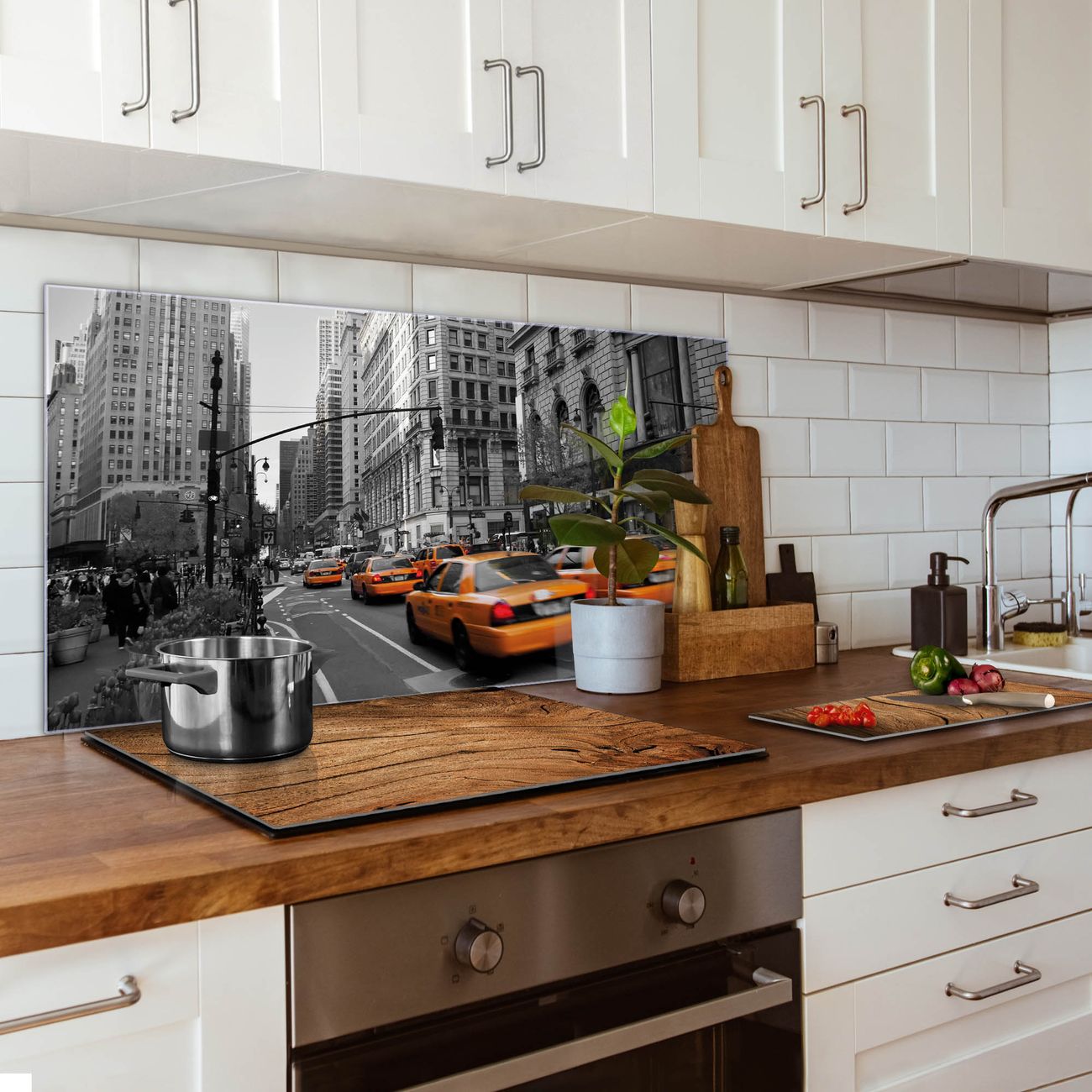 Die banjado Glas Küchenrückwand in verschiedenen Größen mit Motiv New York Taxi schützt Ihre Küchenfliesen vor Fettspritzern oder Wasserflecken. Der Spritzschutz ist gleichzeitig magnetisch und hält Ihre Rezepte oder Einkaufslisten. 4 Neodym-Magnete und 1 Kreidestift liegen bereits bei. Leuchtende Motive und hochwertiges Material machen den Spritzschutz zum Designobjekt. Das dekorative Glasbild gibt Ihrer Küche ein individuelles Erscheinungsbild. Abgerundete Kanten und Sicherheitsglas sorgen für einen sicheren Einsatz.