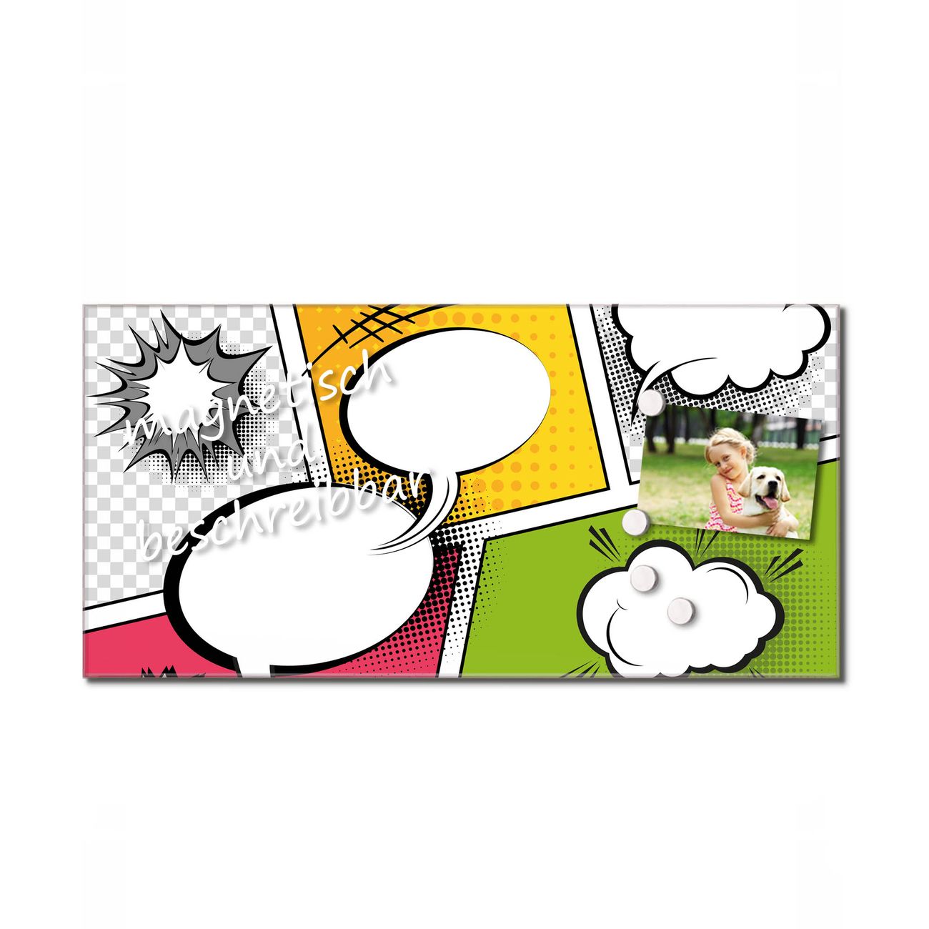 Bitte beachten Sie, dass ausschließlich spezielle Magnete an der Glastafel haften! Wir empfehlen banjado Neodym Magnete, diese sind durch uns auf Wirksamkeit geprüft.